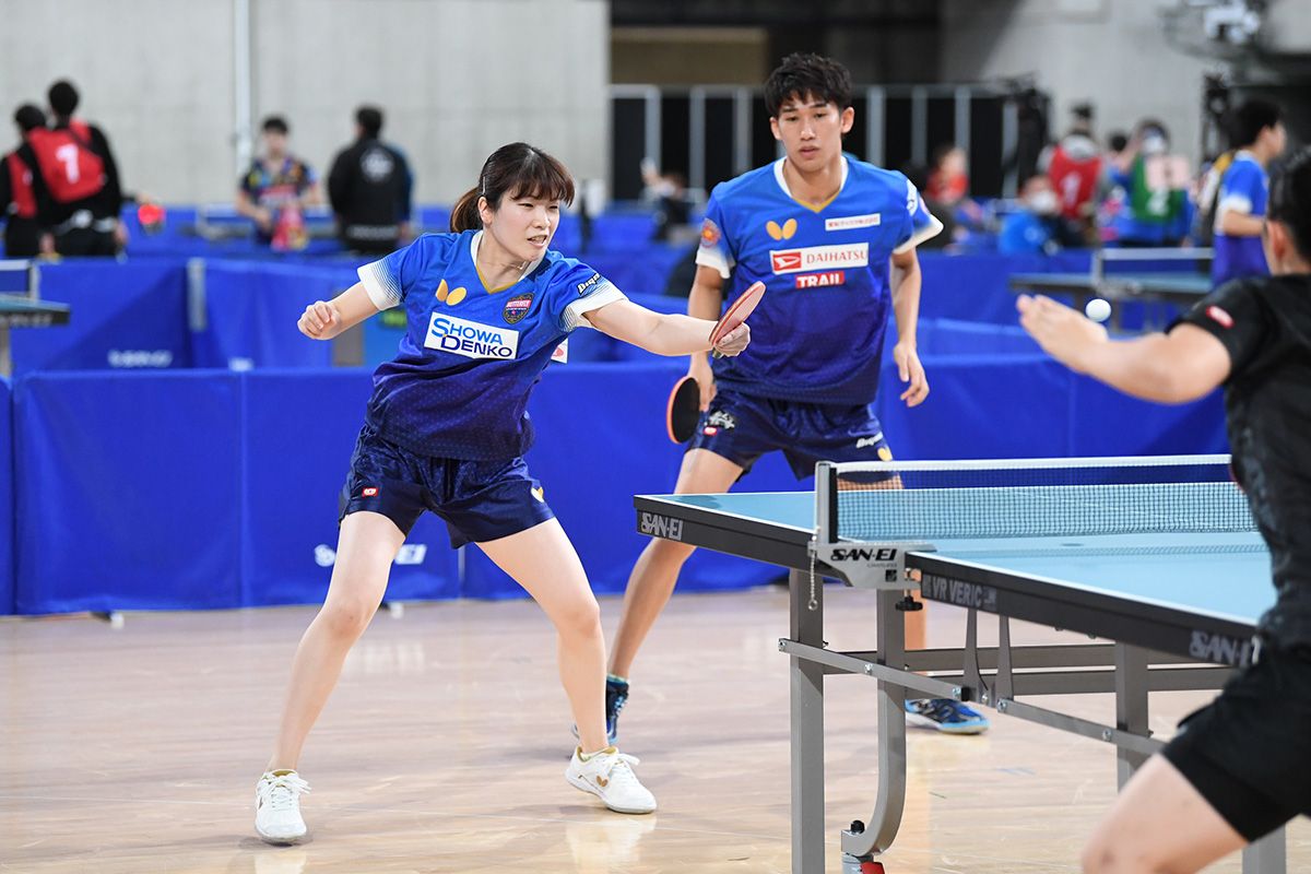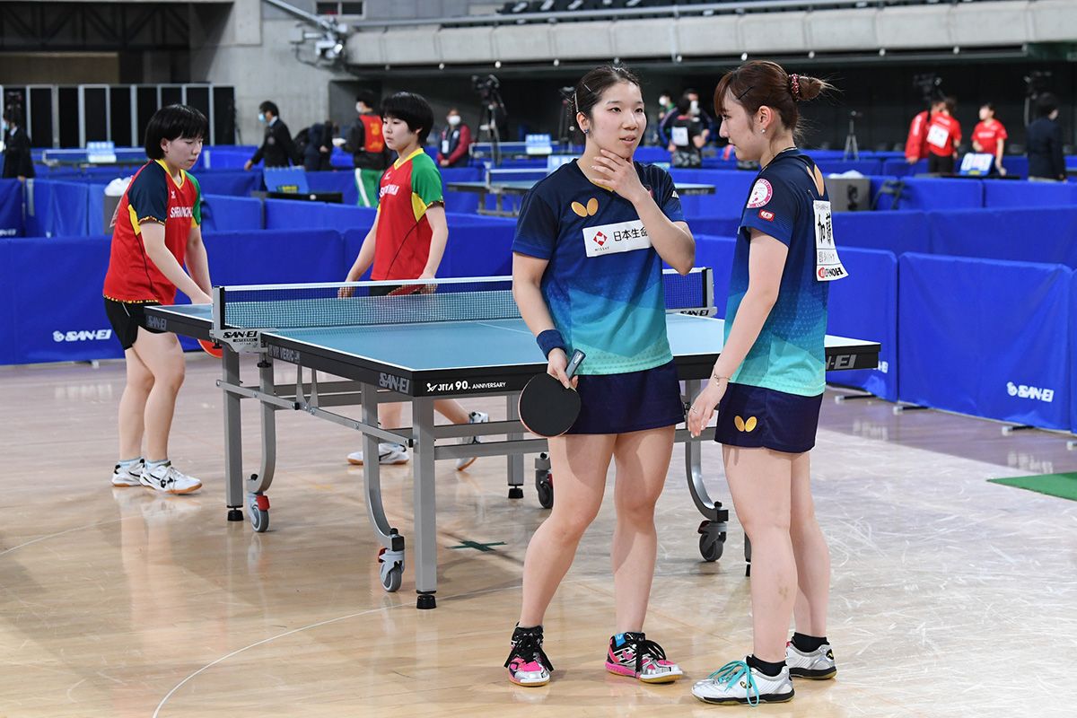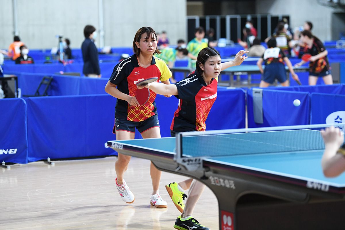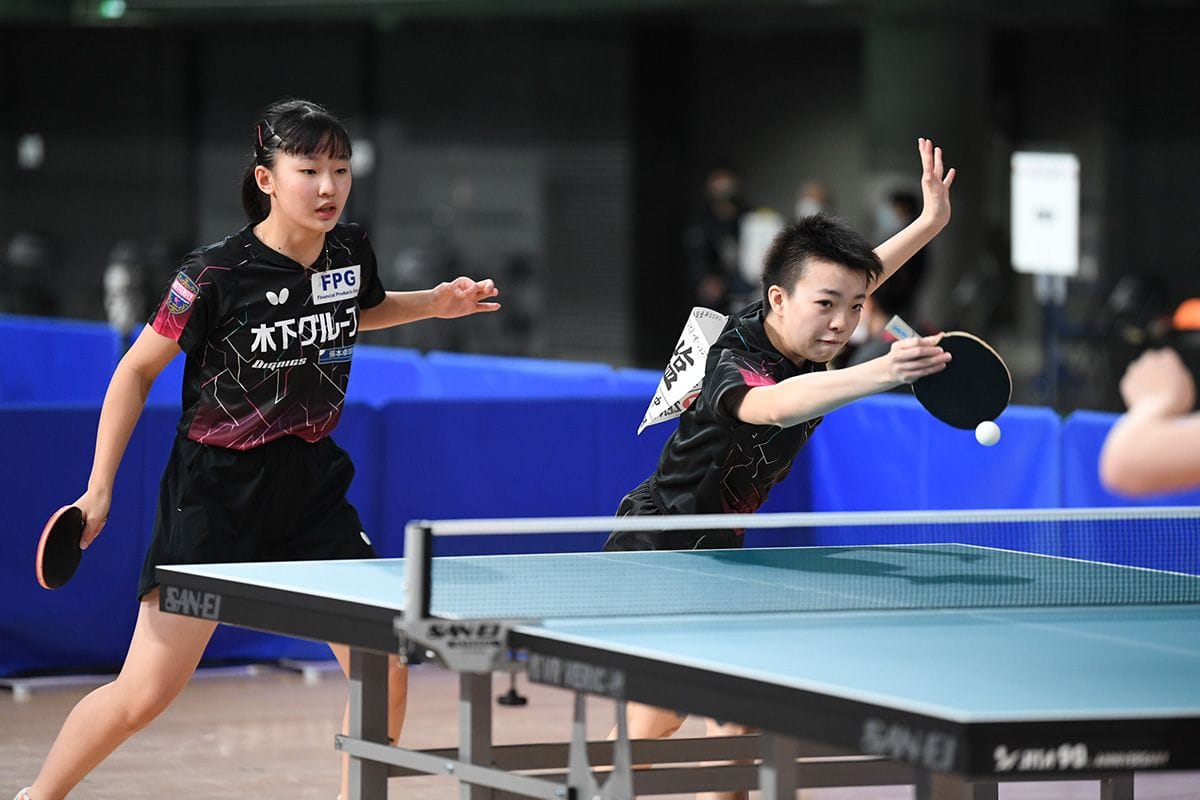 女子ダブルスは、世界卓球2019ブダペスト女子ダブルス銅メダルの佐藤瞳/橋本帆乃香(ミキハウス)が1回戦から登場。さすがの安定したカットと連携で危なげなく4回戦進出を決めた。