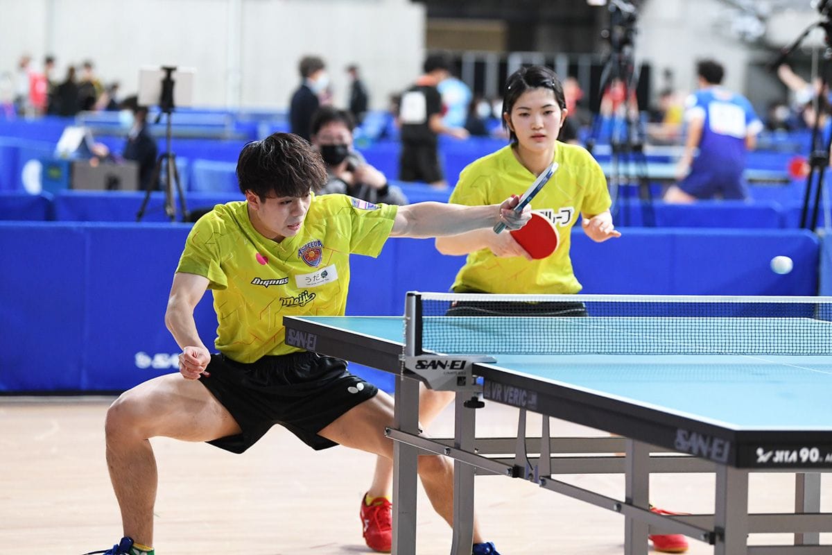 世界卓球2位の張本智和/早田ひな(木下グループ/日本生命)は、初戦の2回戦で出雲卓斗/千葉菜月(明治大/東京富士大)にゲームオールまで迫られる苦しいスタート。続く3回戦でも1ゲームを奪われて迫られ、ひやりとしたが、力のある両者だけにここから調子を上げてくるだろう。