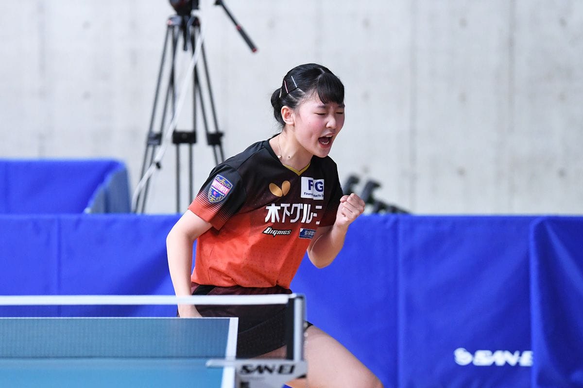 張本と同じ中学生の面手凜(山陽学園中)もベスト4へ勝ち上がった。前陣での打ち合いに強く、5回戦では優勝候補の白山亜美(明徳義塾中・高)を下した伊藤詩菜(ミキハウスJSC)、準々決勝でスーパーシードの原芽衣(四天王寺高)を下したプレーは勢いに乗っており、準決勝での戦いぶりが楽しみだ。