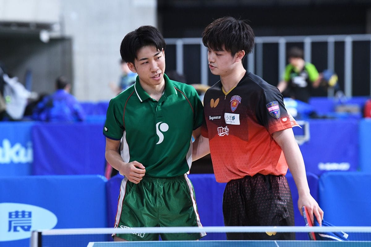 2020年優勝の宇田幸矢(明治大)も、吉田海斗(専修大)の鋭い両ハンドを跳ね返せず、昨年に続いてランク入りを逃した。