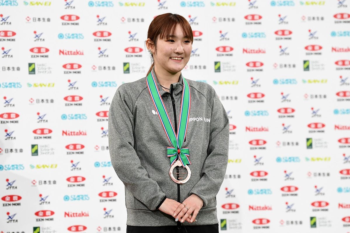 女子シングルス6回戦で前回優勝の石川佳純(全農)を下し、準決勝まで勝ち上がった加藤美優(日本ペイントマレッツ)。準決勝では、早田ひな(日本生命)とゲームオールにもつれ込む大激戦を演じるも、最後は力尽きた。もう一歩のところで決勝進出を逃した加藤だったが、その渾身のプレーは観る者の胸を打った。