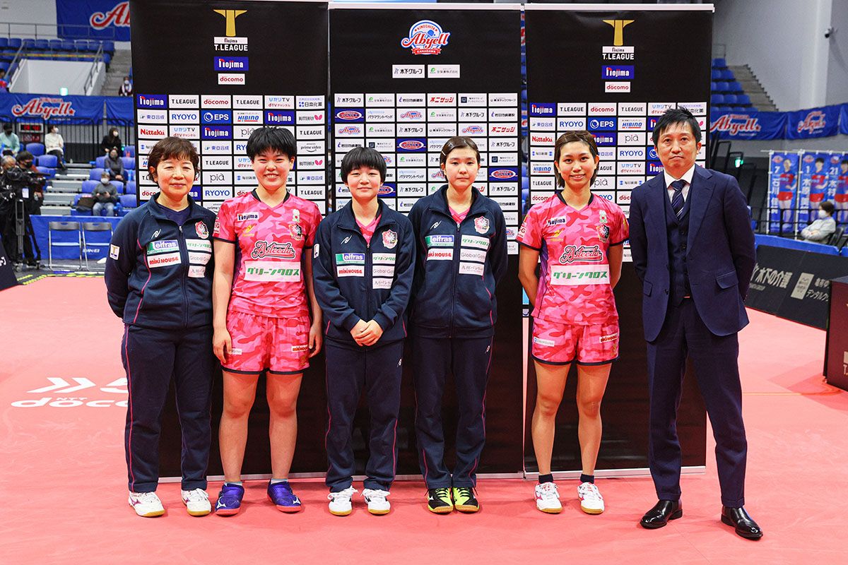 木下アビエル神奈川 対 九州アスティーダは、九州アスティーダが3-2で勝利した。第1マッチは佐藤瞳/橋本帆乃香(九州)が石川佳純/面手凛(KA神奈川)に2-0で勝利。第2マッチは横井咲桜(九州)が張本美和(KA神奈川)に3-2で勝利。第3マッチは木原美悠(KA神奈川)が橋本帆乃香(九州)に3-1で勝利。第4マッチは石川佳純(KA神奈川)が面田采巳(九州)に3-1で勝利。ビクトリーマッチ(延長戦)は佐藤瞳(九州)が木原美悠(KA神奈川)に勝利した。