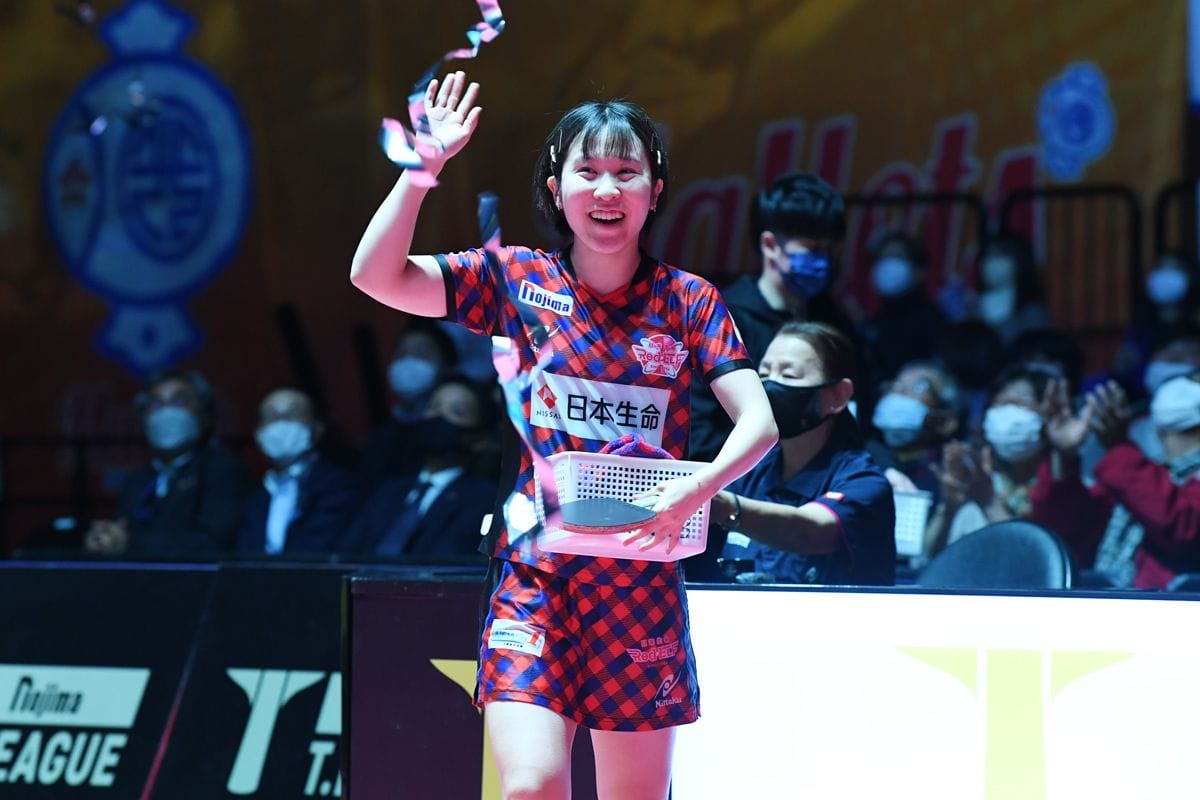 ぜひ、明日からも試合が始まりますし、来年もあるので、もっともっとTリーグや卓球に興味を持っていただけたら嬉しいです。今日は本当に応援ありがとうございました。