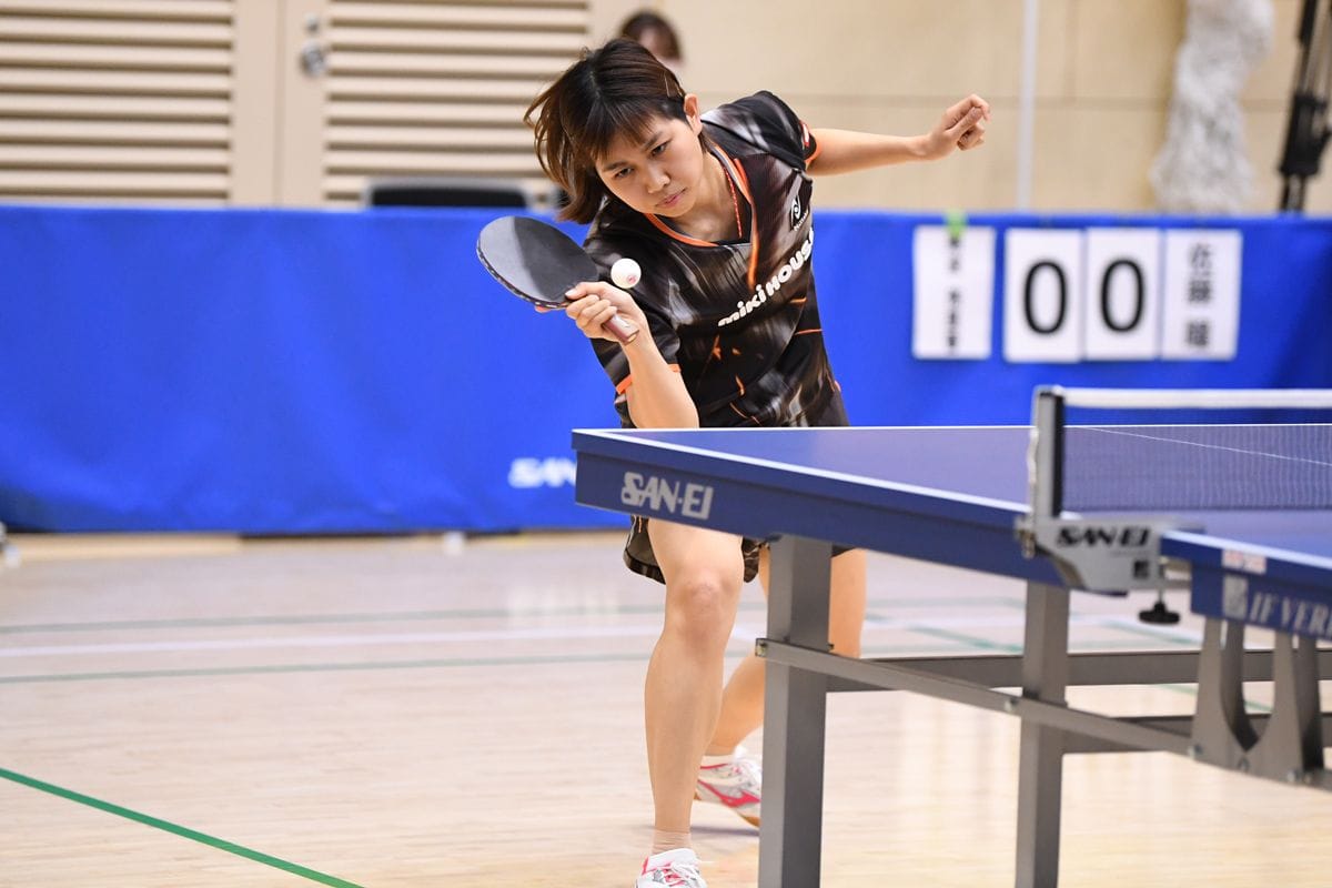 平野は中高生時代に指導を受けていた中澤鋭コーチの心強いベンチを味方に、両ハンドの威力のあるドライブをたたみかけ、苦手としていた木原を圧倒。木原もバック面の表ラバーでエースを見せる場面もあったが、劣勢を跳ね返すには至らなかった。
