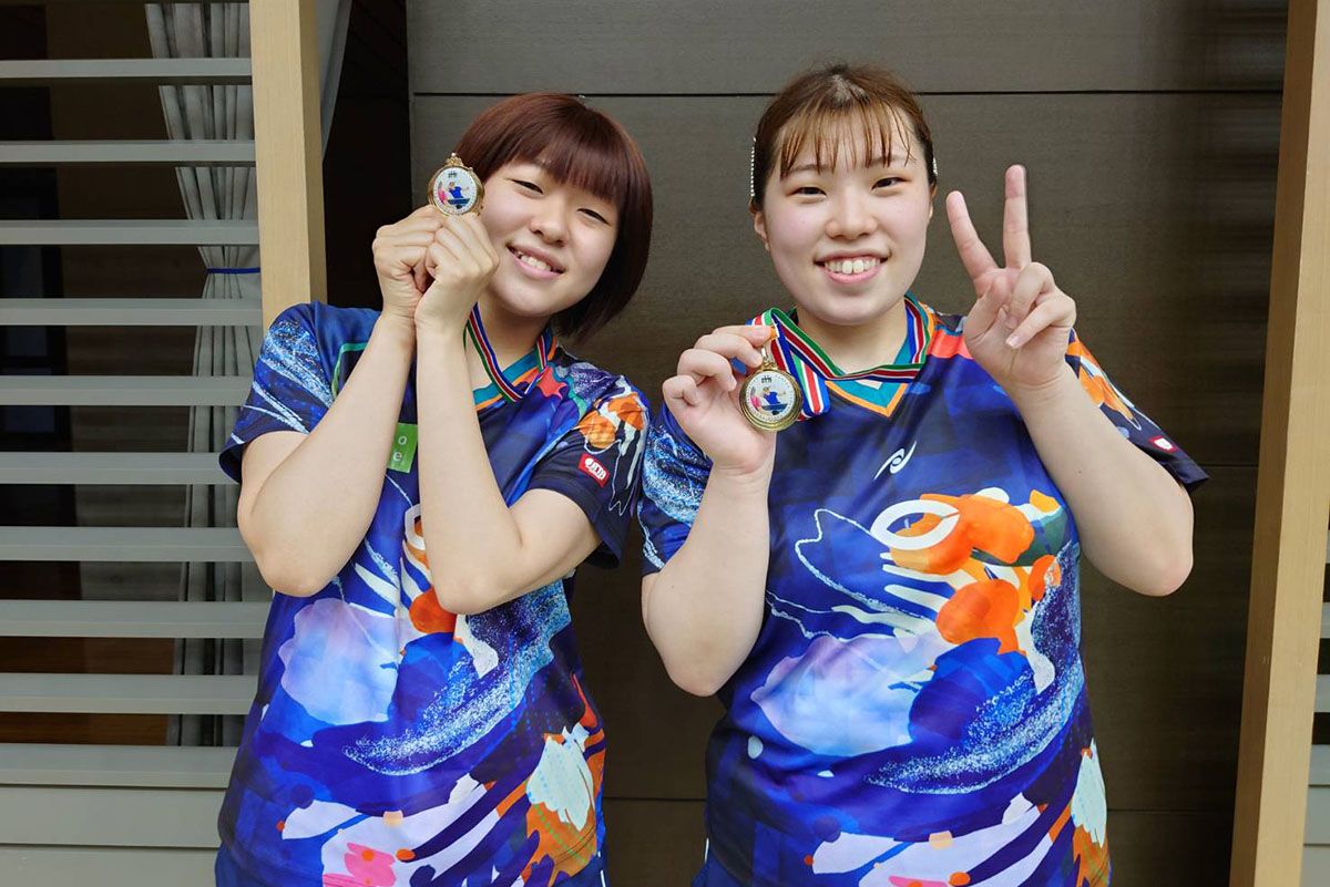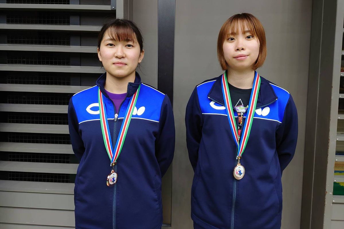 関東学生卓球選手権大会が6月14〜16日に所沢市民体育館で開催された。女子ダブルスは工藤夢(写真右)/枝廣愛(中央大学)が初優勝を遂げた。このところ調子が上がらなかったが、大会に向けて話し合いを重ねたという二人。試合を重ねるごとに調子を上げ、決勝では素晴らしいプレーを見せた。