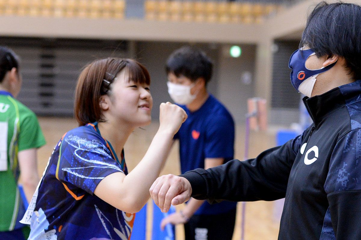 枝廣「初戦も2戦目もあまり良くなくて、特に2戦目の千葉さん(東京富士大学)との試合の1ゲーム目で良くない取られ方をして、負けそうだなと思いました。でも、負けるんだったらインカレにつながる試合をしようと思って、思い切ってできたのが、今につながっていると思います。ダブルスは一緒に優勝したいですねって言ってたんですけど、シングルスは負けたらしょうがない、思い切って行こうと思っていたので、(優勝は)あまり実感がないんですけど、うれしいです」