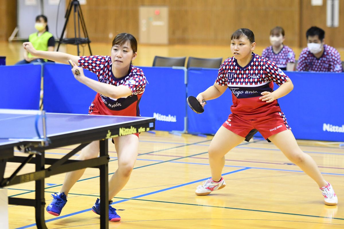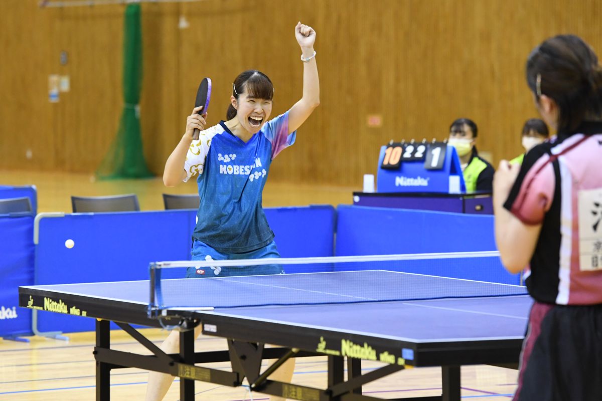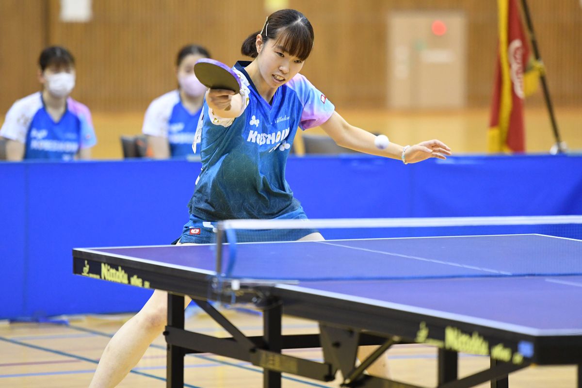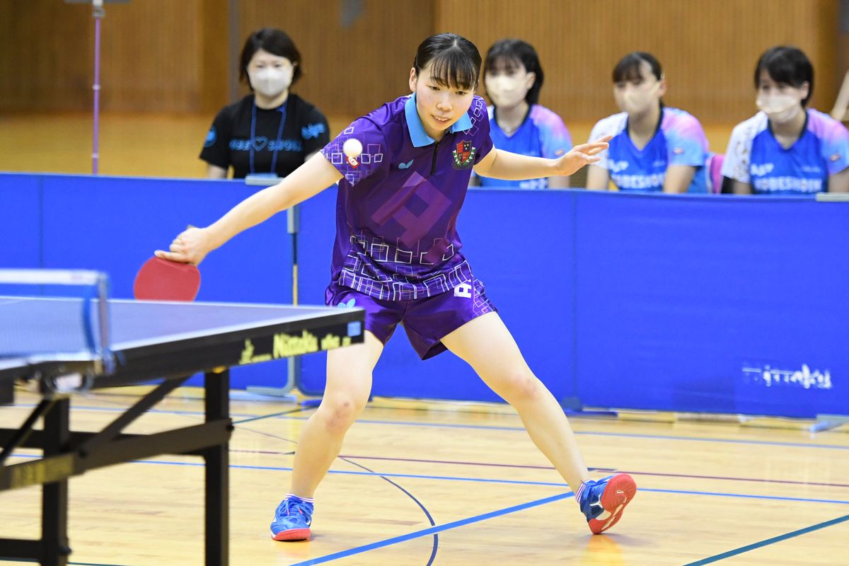 1番のエース対決で神戸松蔭女子学院大が先制したものの、カット主戦型の山本が粘り強く戦って木塚を破り1対1に。