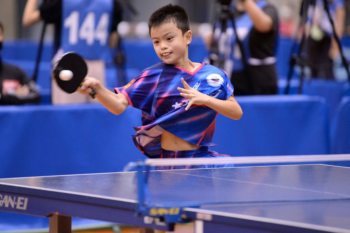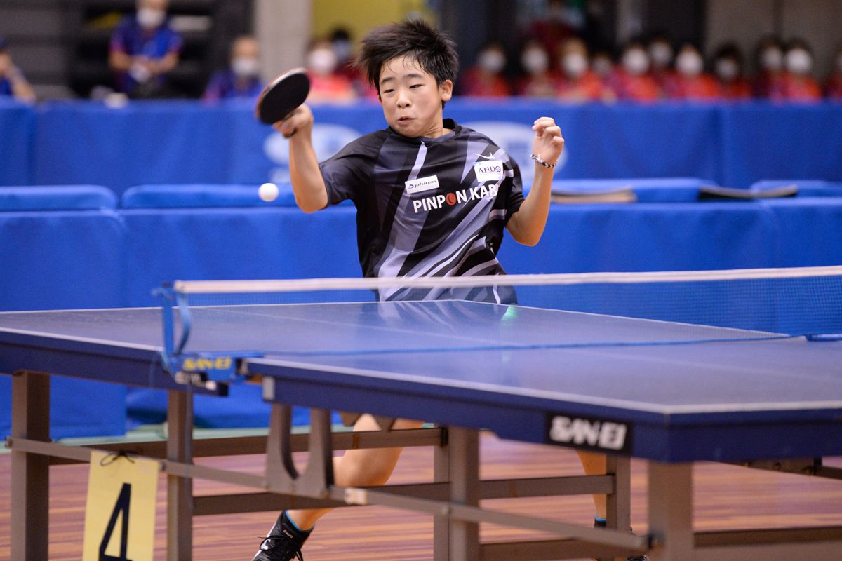 その中で栄冠を手にしたのはカット主戦型の平塚。160cmを超える長身に長いリーチで、広い守備範囲をカバーし、打球点を落としたカウンタードライブや横回転を入れたカット、ラケットを反転してのカットとツッツキなど、小学生とは思えない多彩な技を繰り出し、対戦相手を翻弄。準決勝ではバンビの部で優勝経験のある大野颯真(木下グループ)との熱戦を高い集中力で制し、決勝では同じくバンビ王者の立川凛(ピンポンカベ)の威力のある攻撃を多彩な攻守で退けた。