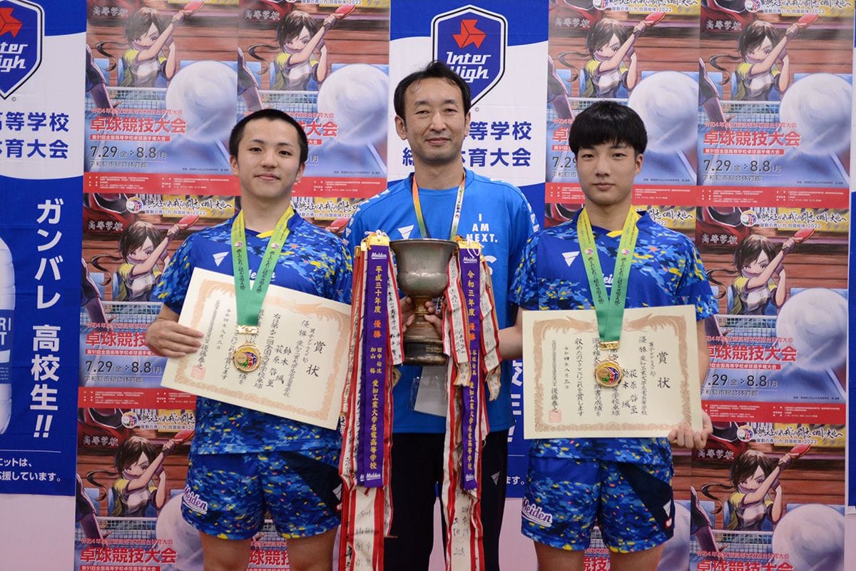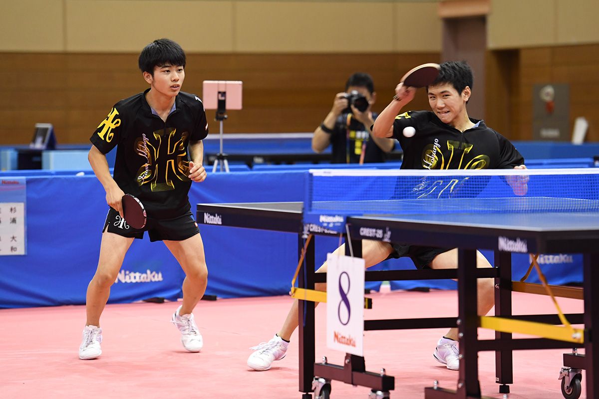 2位の徳田/木方は、準決勝で優勝候補の吉山/中村(愛工大名電)をアグレッシブなプレーで下し、決勝でもほとんど優勝を手中にしかけていたが、途中から鈴木/萩原にチキータを対応され、プレーがおとなしくなってしまった。