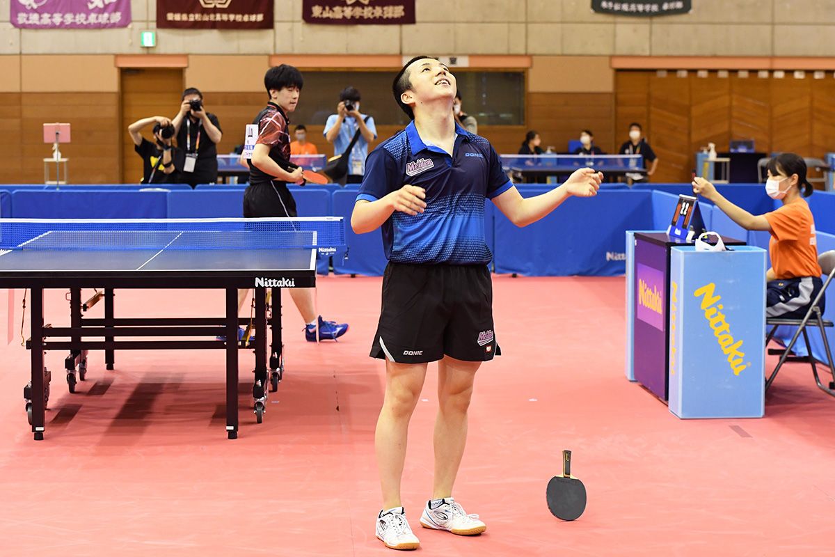 選抜で(鈴木と対戦したとき)はバックを突かれて失点することが多かったのですが、今回のインターハイではストップが多くて(戦い方を)変えてきたのかなと思いました。それと、(鈴木のサービスは)下回転とナックルの違いがあまり分からなくて、ナックルの使い方がうまかったです。