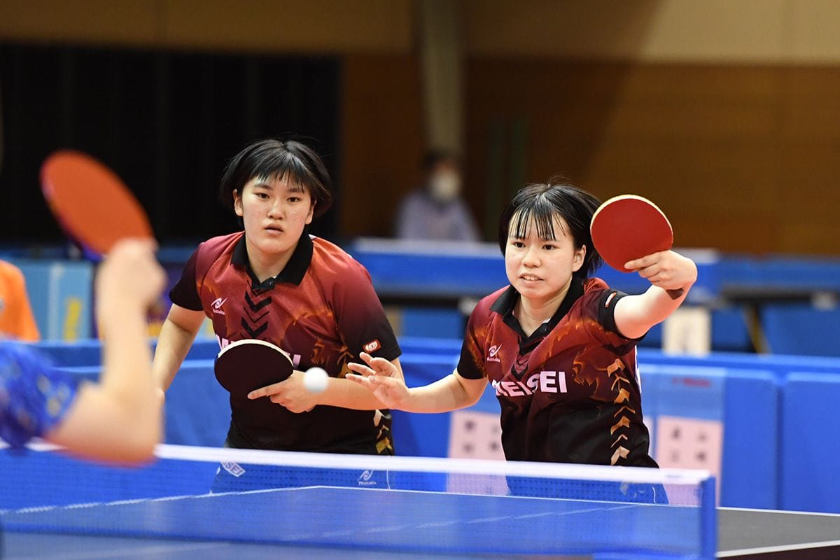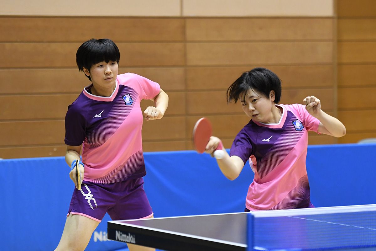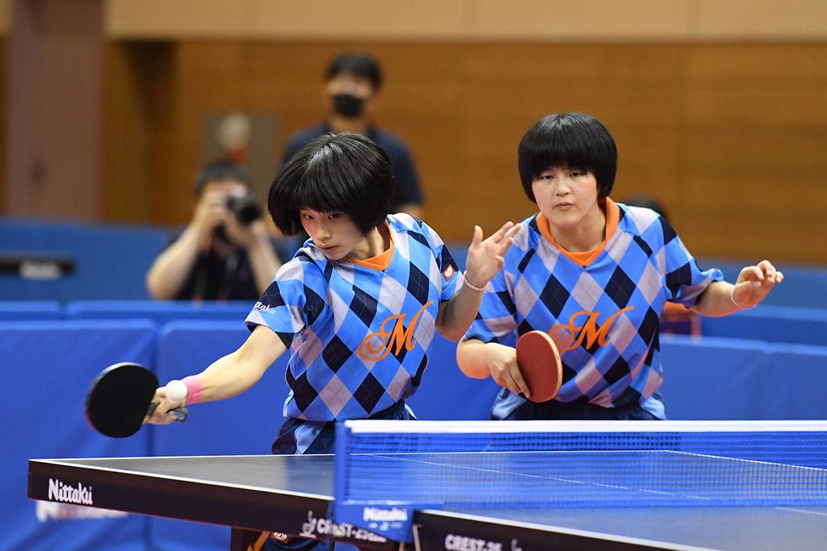 対抗と見られていた準決勝の青井/白山(明徳義塾)に強烈な両ハンドをさく裂させて快勝すると、決勝で小林/野村(桜丘)と対戦。小林のカットと攻撃、野村のブロックと速攻に第2ゲームを奪われるが、第3、第4ゲームは気合いを入れ直して猛攻を仕掛け、優勝をつかんだ。