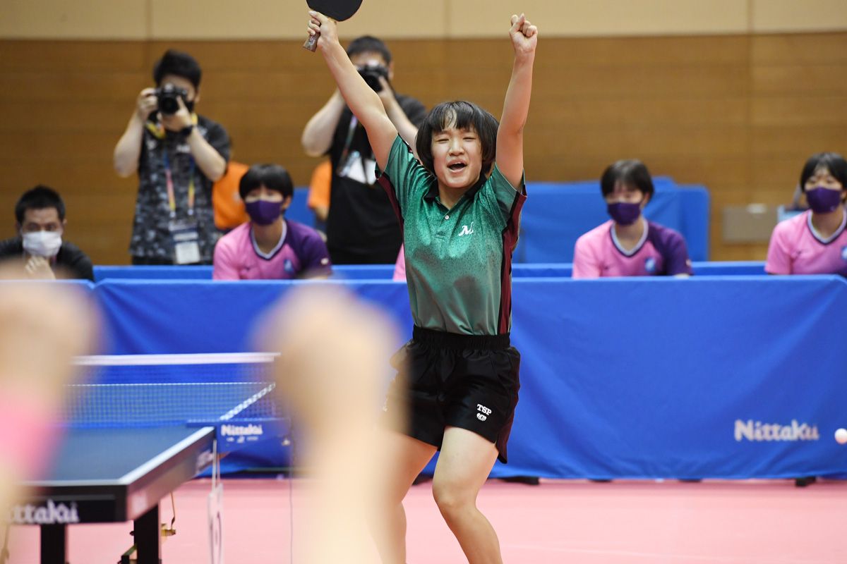 オーダーは大島先生とも相談しながらなんですけど、これがベストというオーダーを組んで、選手に思い切ってやってもらいました。伊藤は準決勝で負けましたが、伊藤は前に出て思い切ってやってほしいっていう気持ちで、決勝でも前半で出しました。決勝では伊藤の1点がすごく大きかったと思います。相手のダメージにもなったと思いますし、その流れで、ダブルスにも繋がってよかったです。