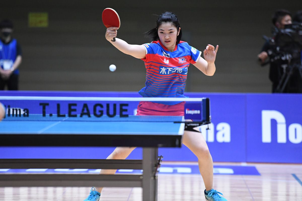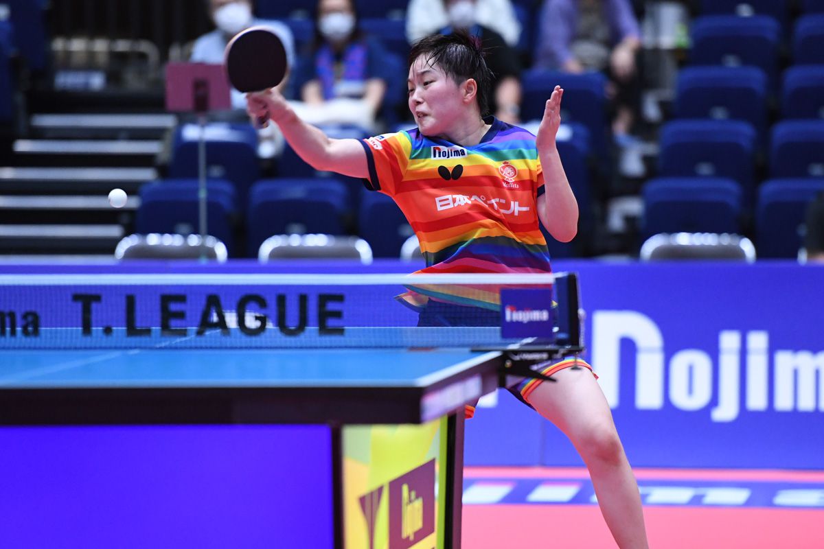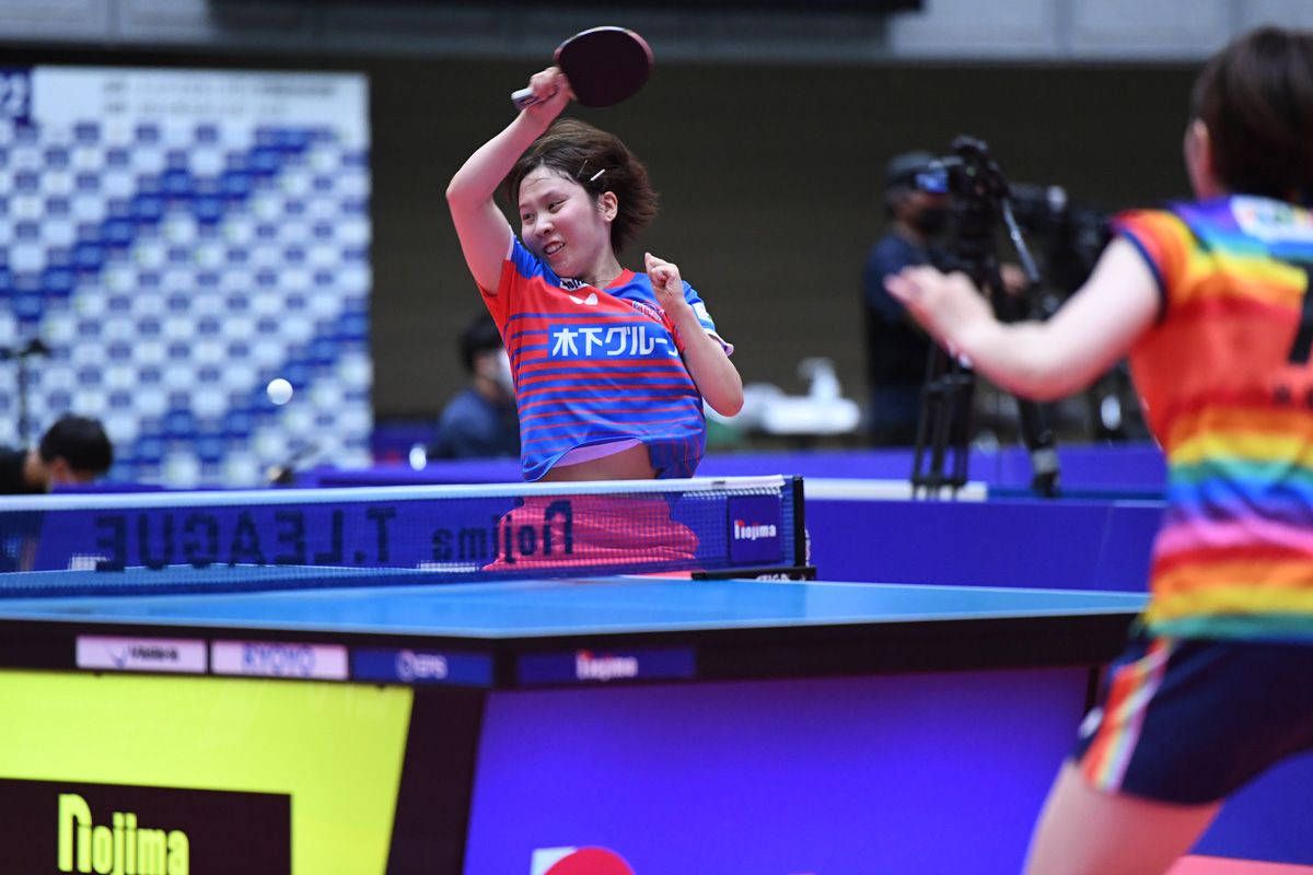 石川佳純(木下アビエル神奈川) 4,-7,8,3,5 南波侑里香(トップおとめピンポンズ名古屋)