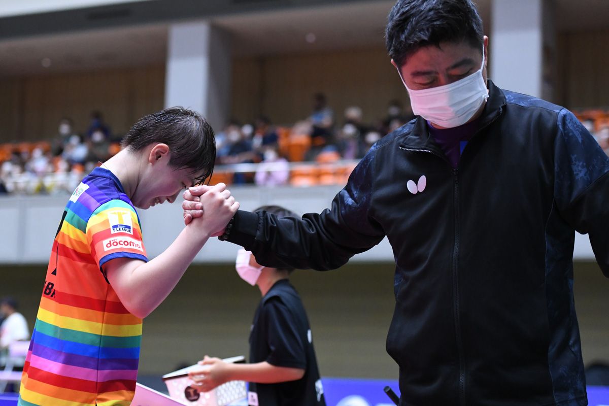 平野美宇は、大藤沙月、橋本帆乃香を破ってベスト4入り。威力のある両ハンドを武器に、静かに優勝を狙う。