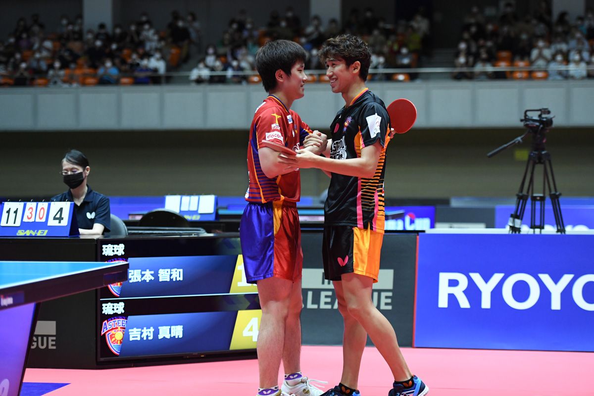 男子準決勝は琉球アスティーダ勢と岡山リベッツ勢同士の対戦となったが、ともに琉球アスティーダ勢が勝利。決勝は来シーズンから加入が決まった張本智和と、キャプテンとして活躍してきた吉村真晴の対戦となった。