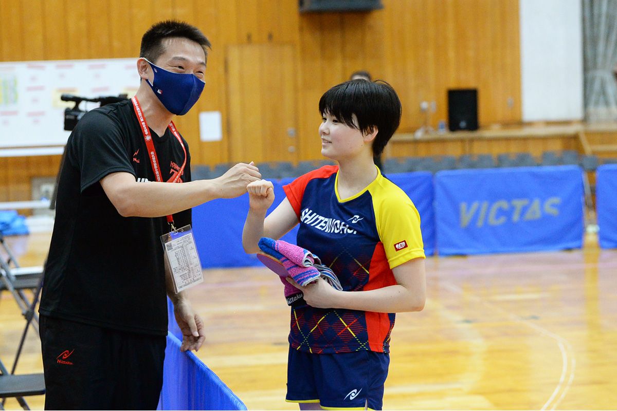※写真はベスト8入りを決め、村田充史監督とグータッチを決める萩原怜奈(四天王寺)
