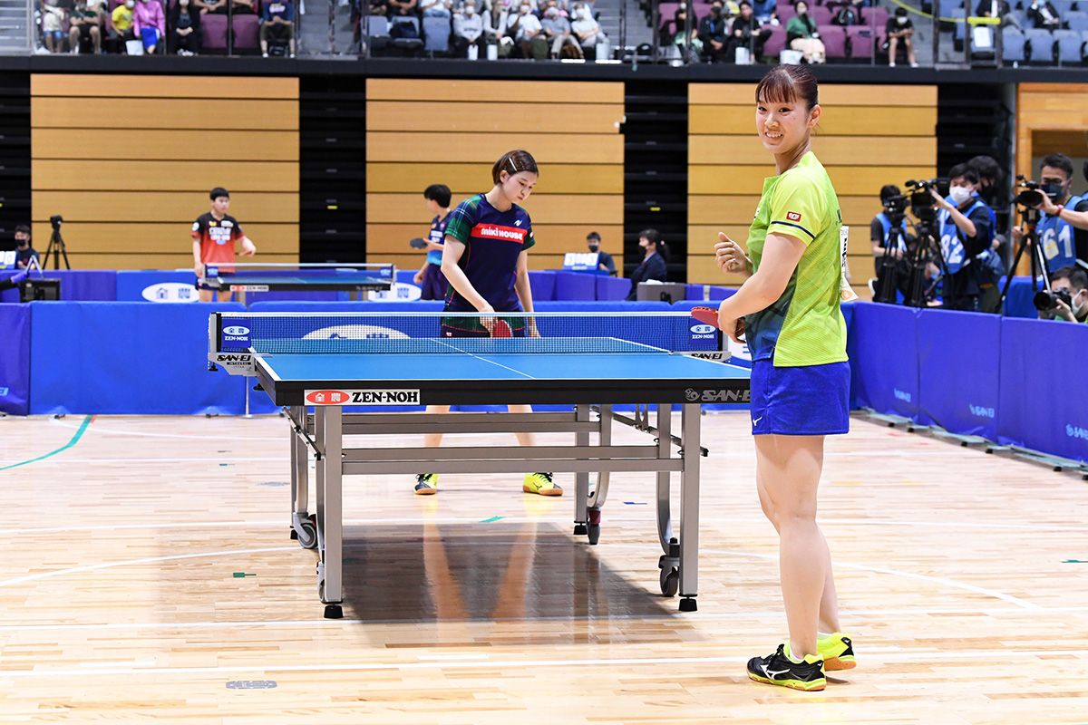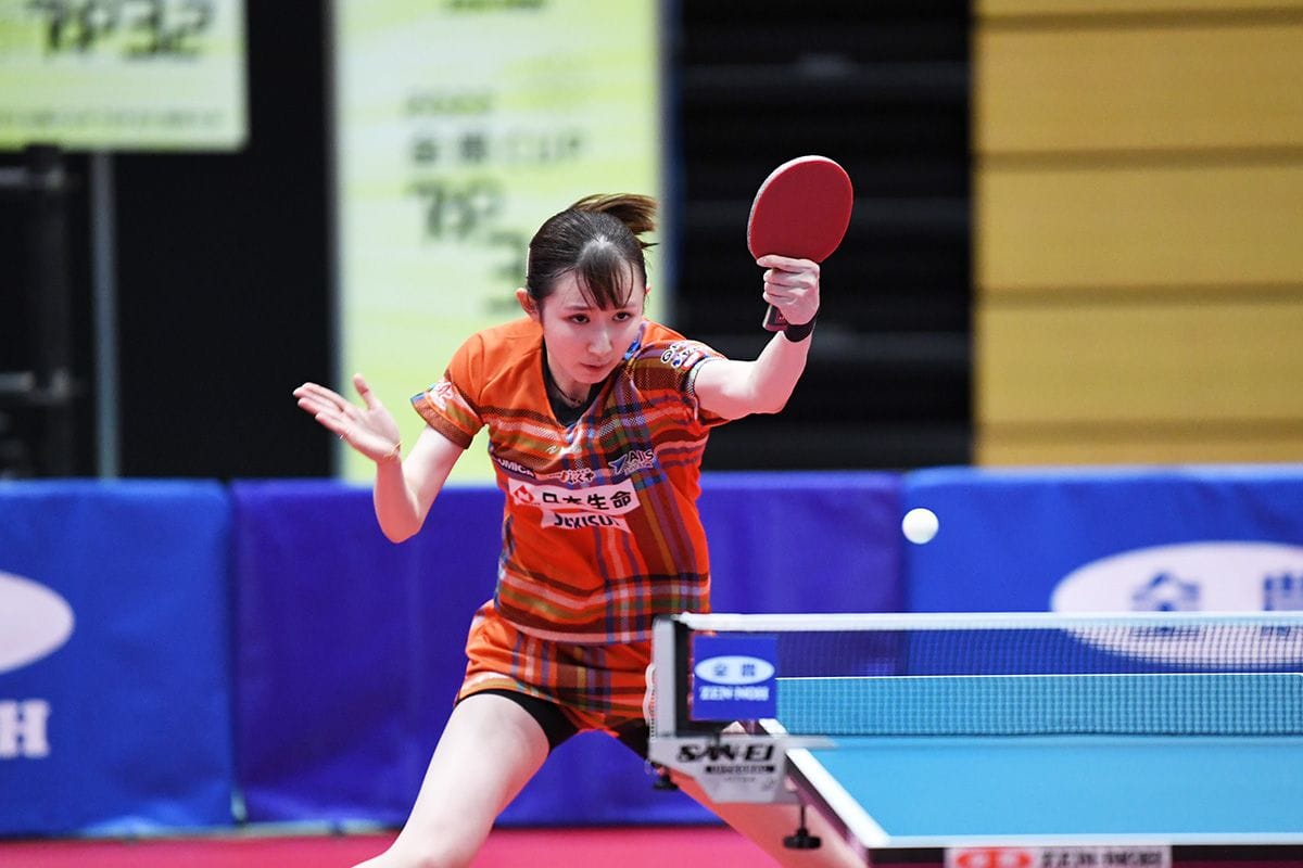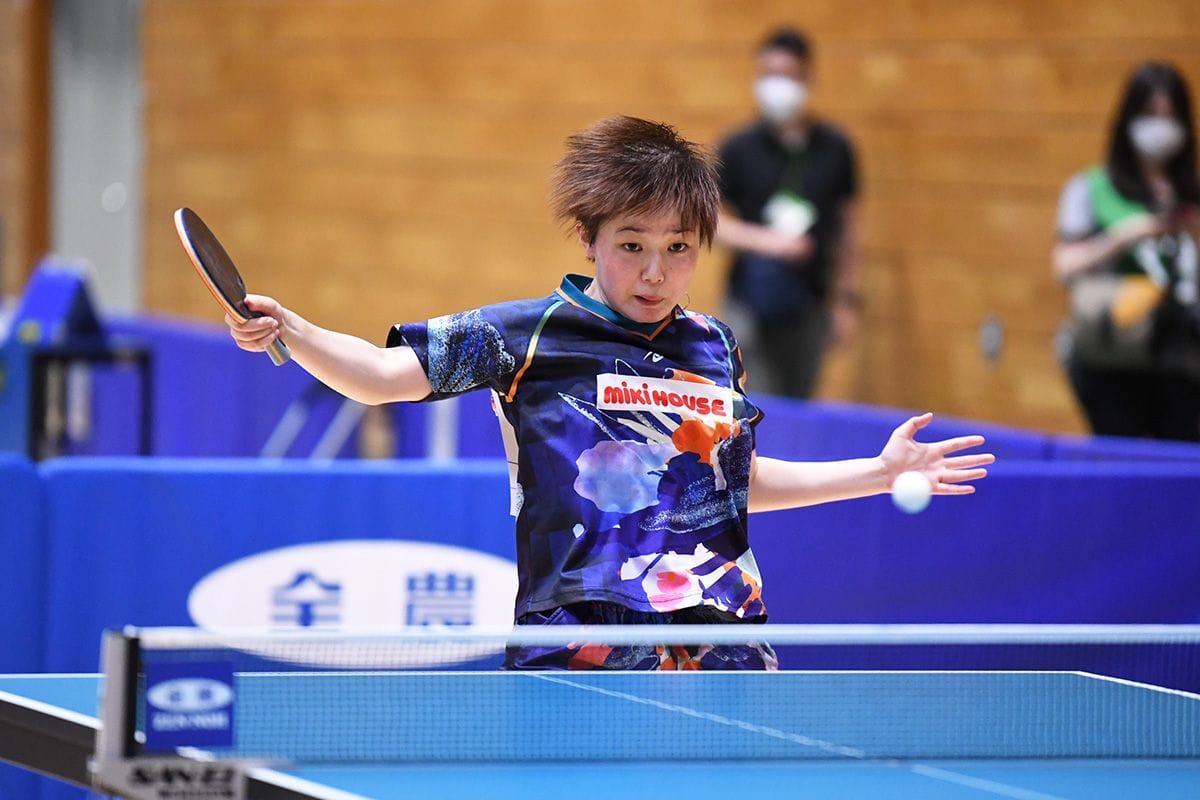 第1シードの早田ひなは、準々決勝で平野美宇と対戦。競り合いが予想されたが、早田が持ち味のパワフルな両ハンドで平野を圧倒し、ストレート勝利。Tリーグ NOJIMA CUP 2022に続くタイトル獲得に向けて隙のないプレーを見せている。