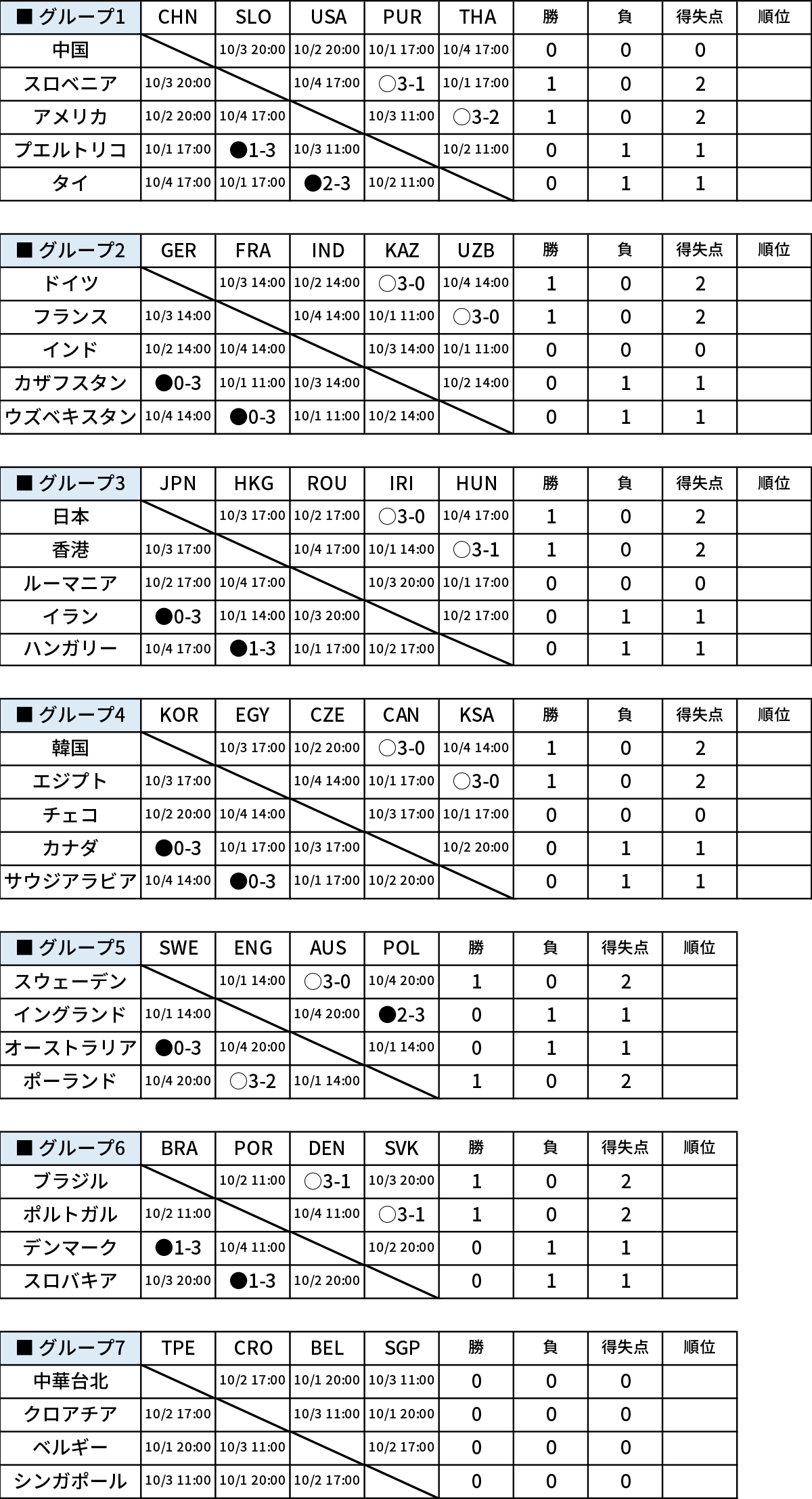 この他、順当に強豪チームが1勝目を挙げる中、世界卓球2016クアラルンプールで銅メダルを獲得したイングランドが、ポーランドに惜敗し黒星スタートとなった。