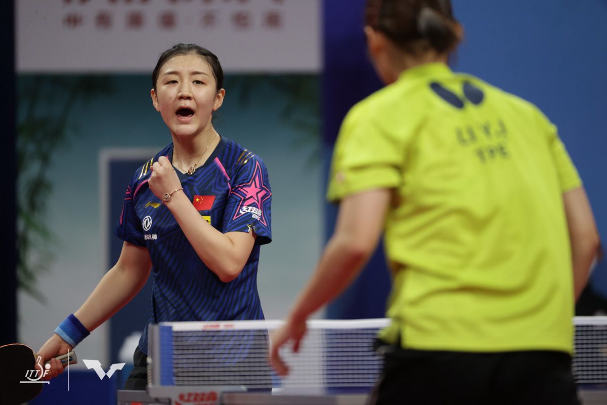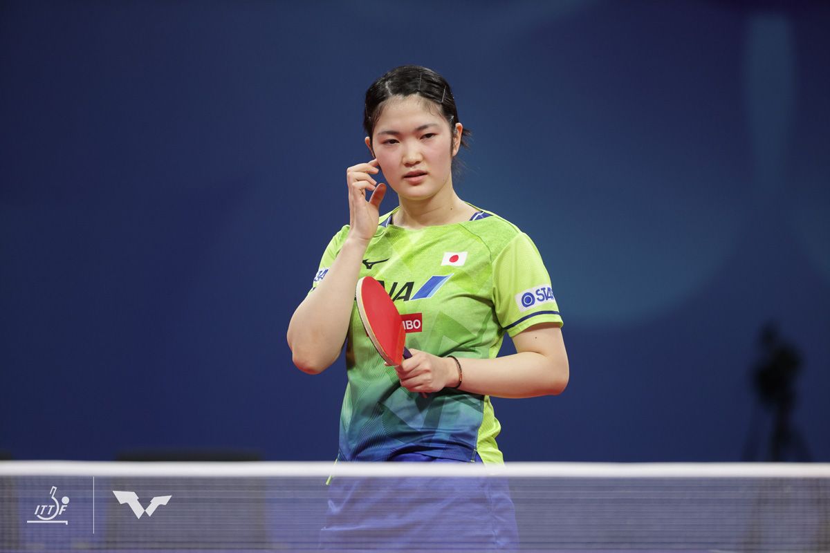 1ゲーム目前半から孫穎莎の威力あるドライブに対して積極的にカウンターで対応した陳思羽(世 界ランキング22位)がゲーム中盤にリードを奪いましたが、孫穎莎の対応力とコントロール力は別格でした。 コントロール力は、ドライブだけでなくサービス・レシーブにおいてもレベルが高く、1 ゲーム目を逆転で先取すると2ゲーム目からは、陳思羽が良いプレーをすればするほど、孫穎莎本来の能力を引き出してしまうという何とも皮肉な展開となってしまい、3対0で孫穎莎が勝利しました。