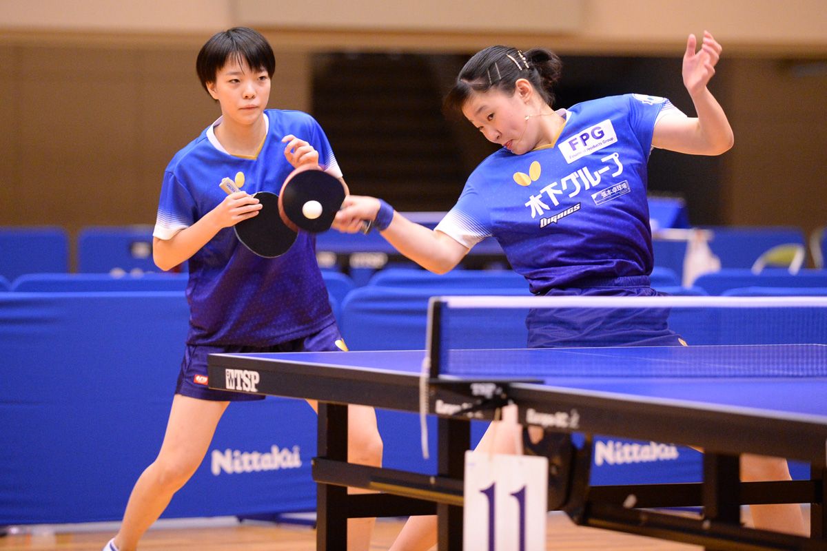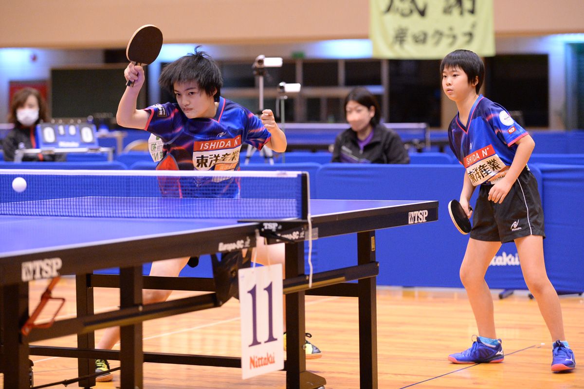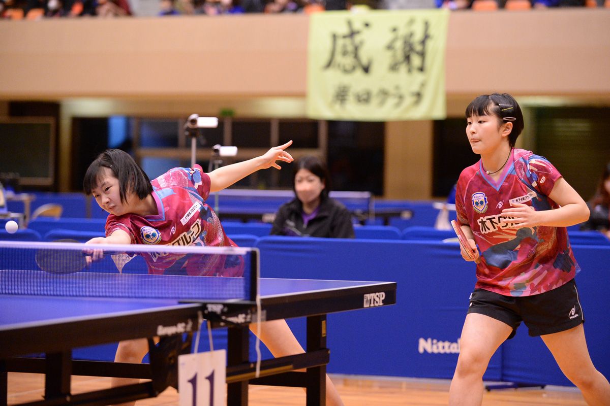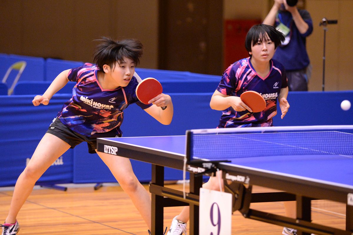 大会初日は男女ダブルス1回戦〜決勝が行われ、女子ダブルスは、第1シードの張本美和/小塩悠菜(木下アカデミー/星槎中)が初優勝を飾った。