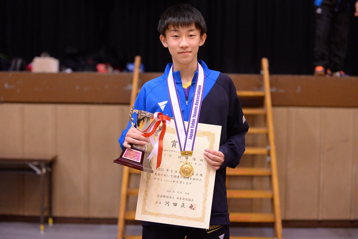 中城は準決勝で全国中学校大会2位の渡部に競り勝つ勝負強さを見せたが、決勝では第1ゲームのジュースを落とすと、持田が安定感のある前陣カウンターで主導権を握り、フォアハンドの決定打も冴えた持田が第3ゲームを落とすも、試合の流れを手放さずに初優勝を決めた。敗れた中城も恵まれた体格にセンスフルなバックハンドを披露し、全国区デビューを果たした。