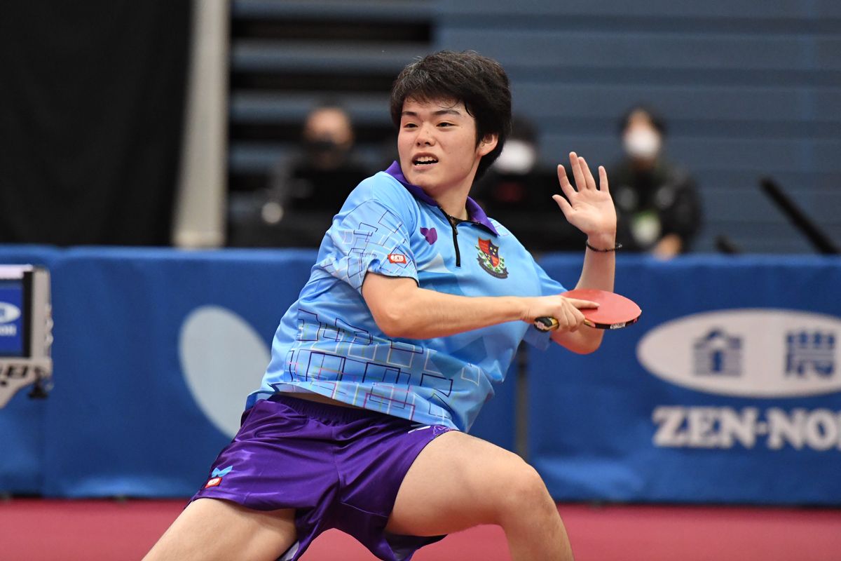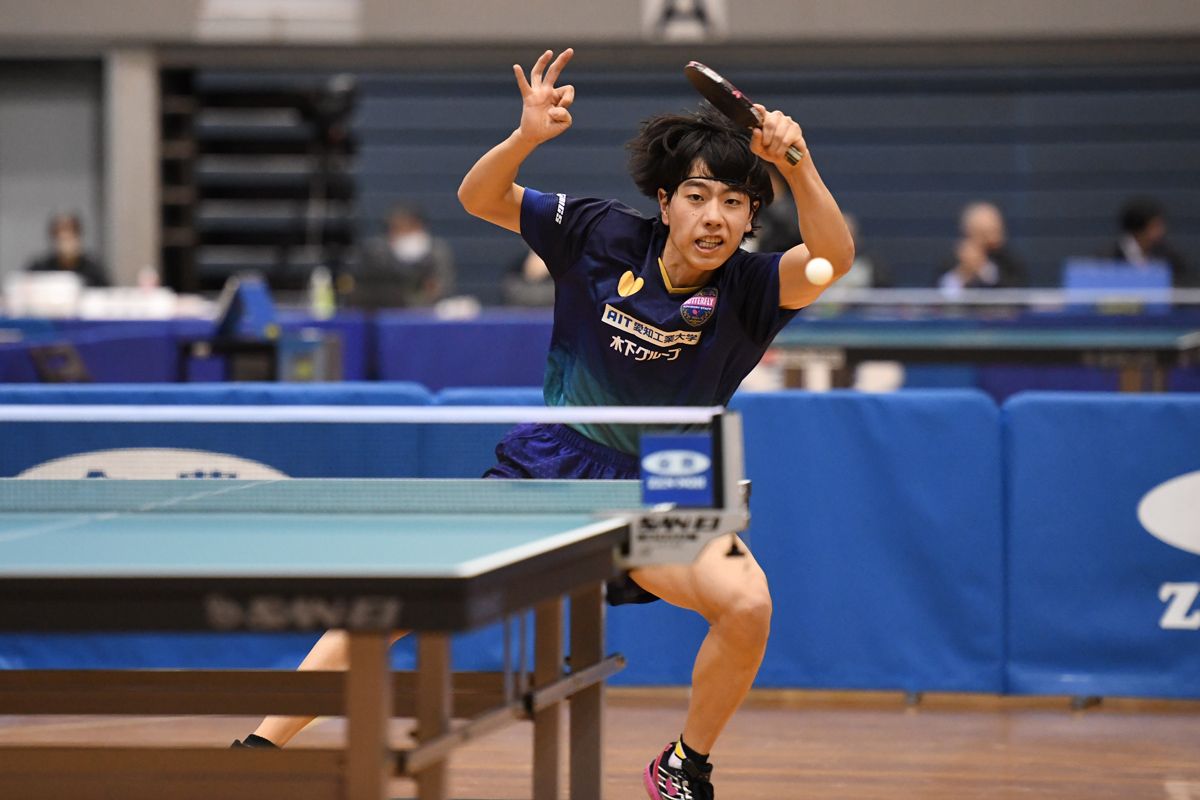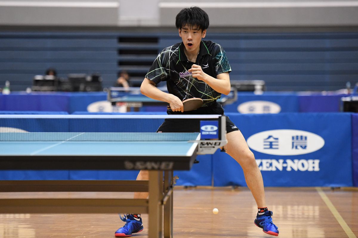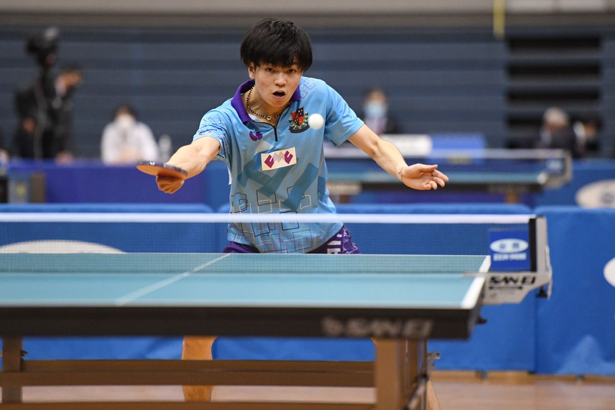 篠塚大登(愛知工業大学)は2回戦でインターハイ王者の鈴木颯(愛工大名電高校)を4対1で破ると、準々決勝で吉村真晴(個人)と対戦。両者、サービスからの展開でもラリーでも互角の勝負を繰り広げたが、思い切ってフォアハンドで攻めきった篠塚に軍配が挙がり、ベスト4入りを決めた。