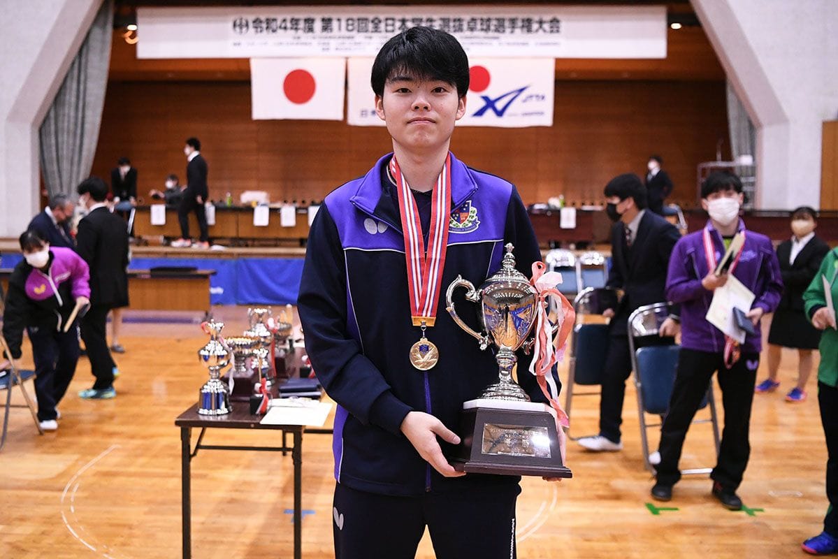 4位は宮本大輝(専修大)。今年度の全日学でベスト16に入り急上昇した宮本は、長身でリーチを生かしたバックハンドドライブの威力がすごい。今大会で4位に入りさらに飛躍した。