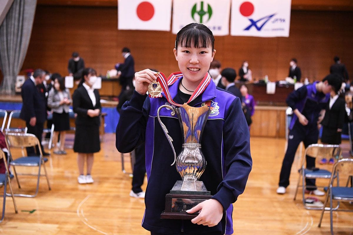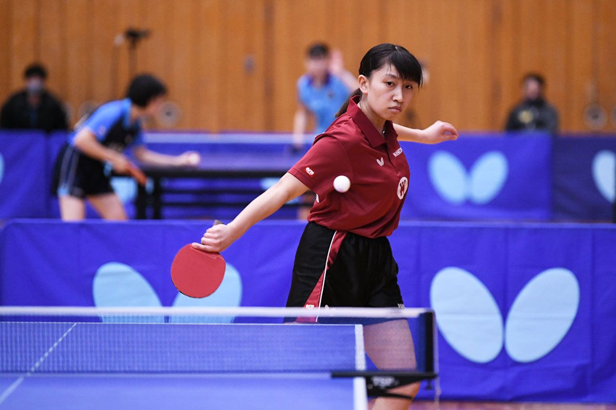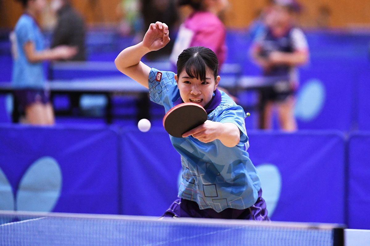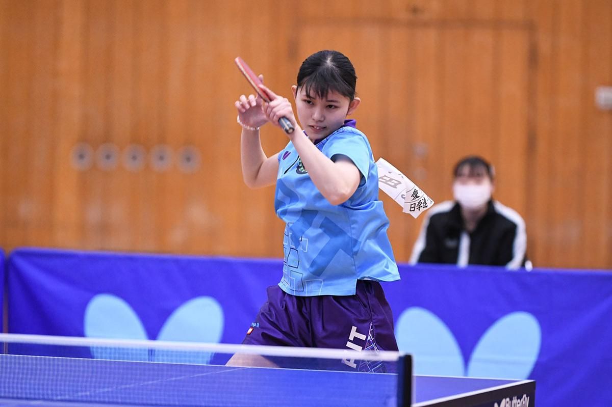 2位は黒野葵衣(早稲田大)。全日学2連覇を遂げていたが、今大会では岡田の気迫に押された。打球点の高い振り下ろすカットと、すきを見逃さない攻撃が見事。