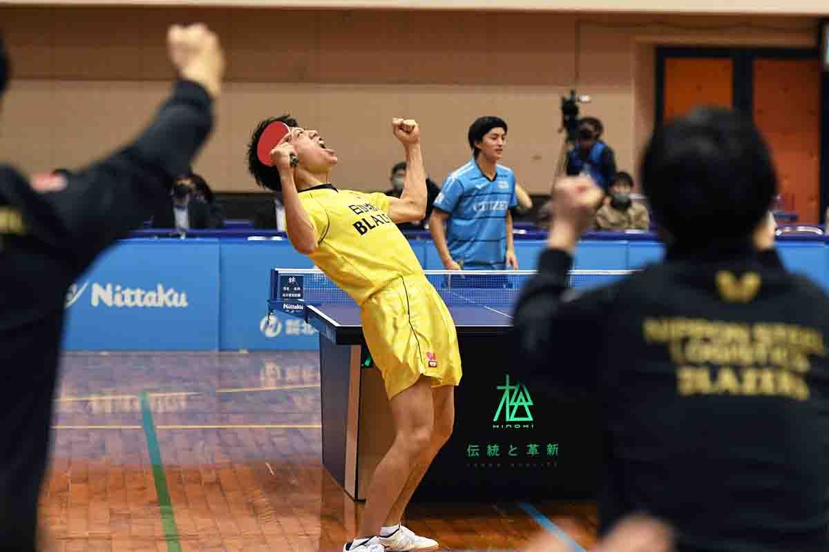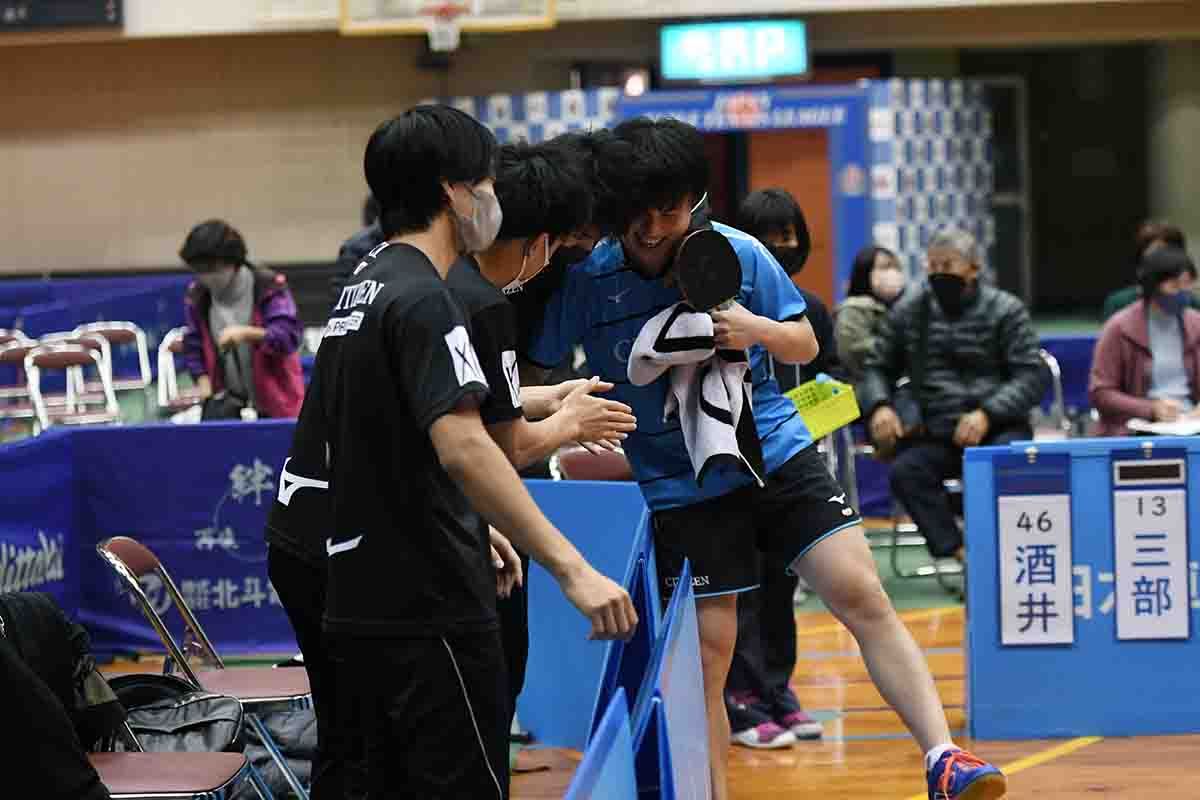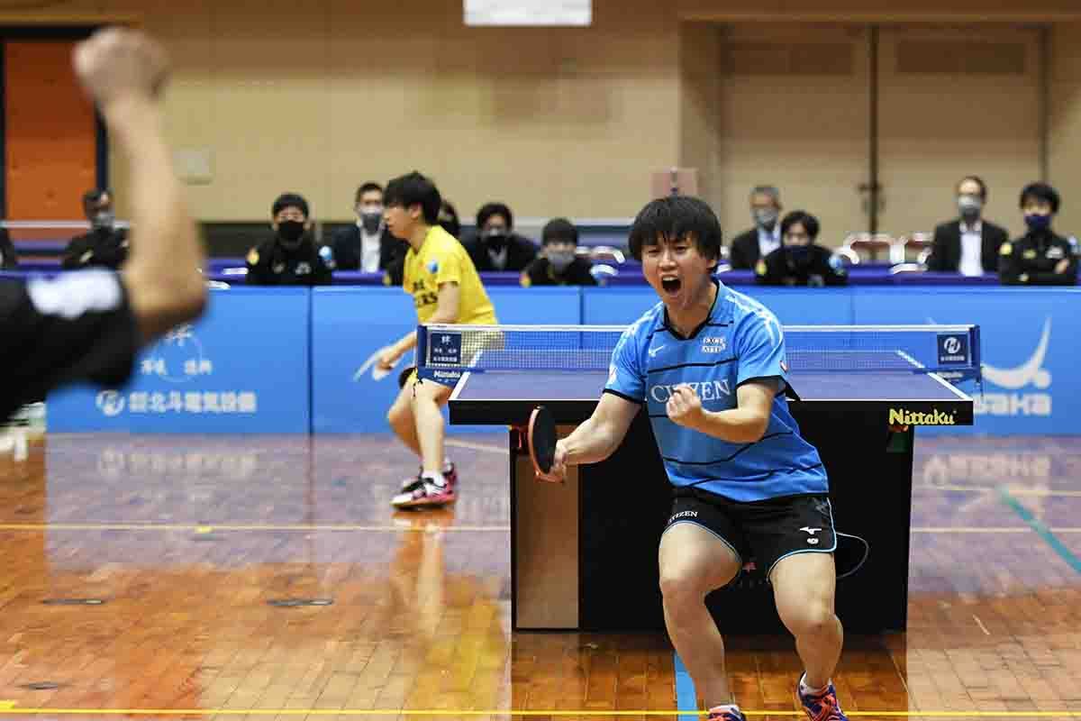 大島の力からすれば王手をかけられてもおかしくなかったが、御内の渾身のプレーで踏みとどまったことで上村/酒井のダブルスも奮起。積極的なプレーで力のある藤村/髙見を下し、シチズン時計が逆に王手をかける。