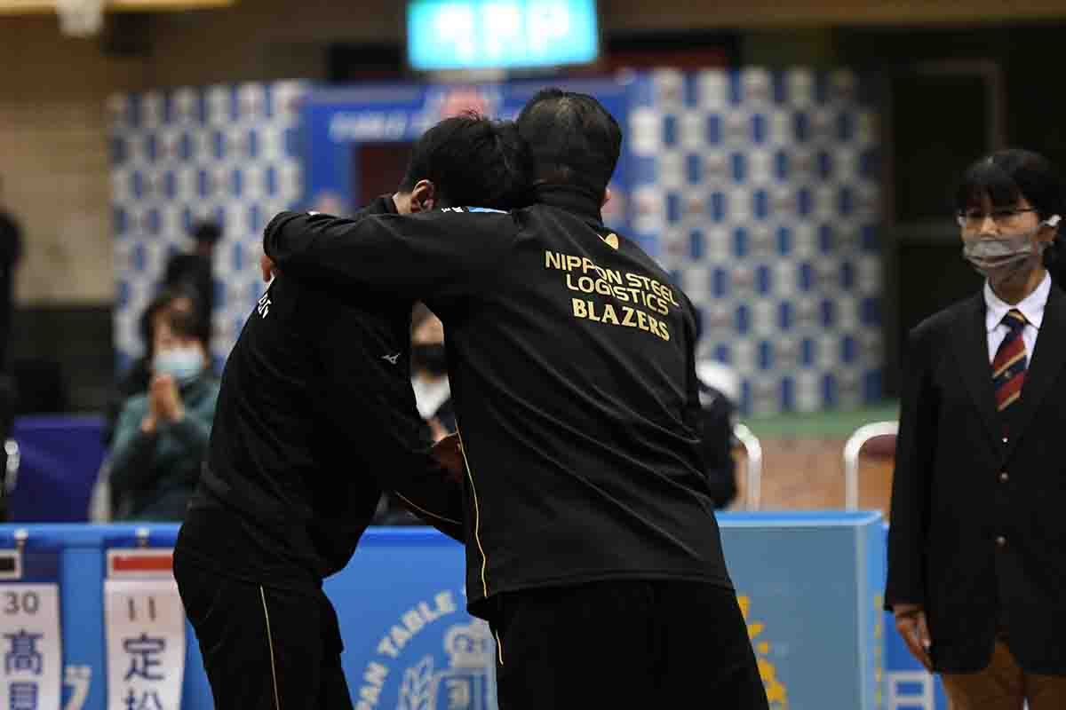 2番の御内とゴールド選手(レンタル選手)の大島の試合は、「これぞファイナル4」とでもいうような見ごたえのある試合になった。来年の全日本で引退を表明している監督兼選手の御内は、「力も実績も相手(大島)が上。向かっていくだけだった」と振り返る通り、大島の豪打を何本もカットで拾い、思い切った3球目攻撃も随所で決めて3対1で勝利。引退を目前に控えた選手とはとても思えない充実したプレーで、御内が勝負を振り出しに戻した。