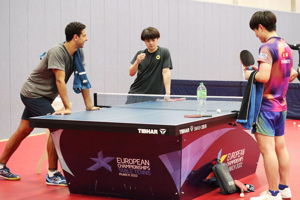 ブンデスリーガの試合でも例えば、無理にチキータに行こうとせずストップレシーブを使ったり、長いツッツキを入れたりしながら、細かい技術の感覚をつかもうとしていた。