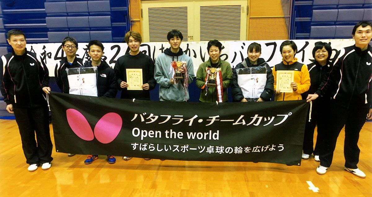 株式会社タマスでは、卓球のおもしろさを多くの人に味わっていただくために「バタフライ・チームカップ」を企画しています。「バタフライ・チームカップ」は、各地の卓球連盟・協会様が主催し、株式会社タマスがご協力する形で開催される大会です。