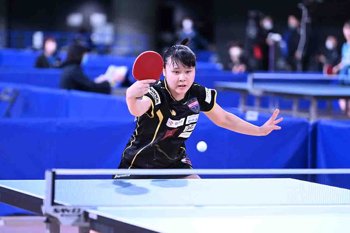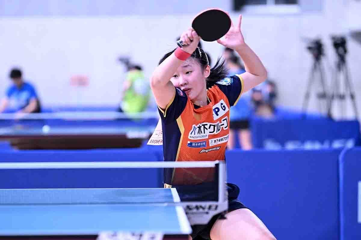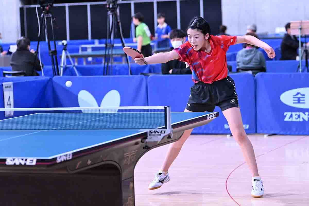 全中優勝の面手凛(山陽学園中)も、持ち味の鋭い両ハンド攻撃で3回戦を快勝し、順当に4回戦へ駒を進めた。
