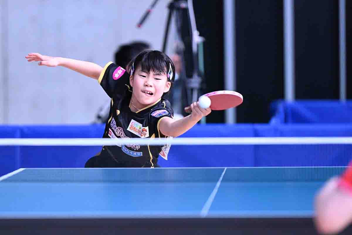 昨日の1回戦に続き、2回戦も勝った松島美空(京都カグヤライズ)は、3回戦でスーパーシードの首藤成美(希望が丘高)と対戦。得意の巻き込みサービスが効いて第1ゲームを先制するが、第2ゲーム以降はミドルをうまく攻められ、逆転を許した。松島の快進撃はストップしたが、小学3年生でスーパーシードまでたどり着いたのは普通のことではない。サービス力や両ハンドの正確性、読みの良さはジュニア女子でも十分通用するレベルにある。「福原愛ちゃんが小4で決勝まで行ってると聞いたので、来年の全日本ジュニアではランクには入りたいです」と試合後、抱負を語った松島の今後に大注目だ。