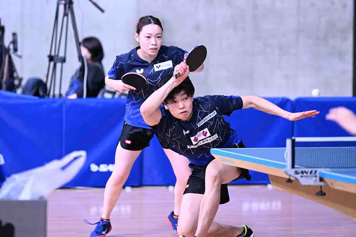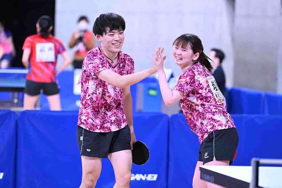 ベスト4最後の一席は、田中佑汰/田中千秋(愛知工業大/愛知自動織機)の姉弟ペアがつかんだ。昨日の4回戦で松島輝空/張本美和(木下アカデミー)を下した小野寺翔平/枝廣愛(中央大)は、その勢いに乗りたかったが、田中/田中の前陣でのスムーズな連係に屈した。
