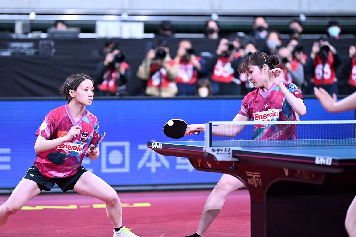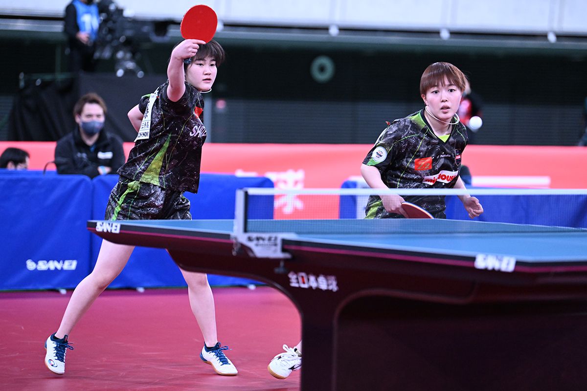 伊藤/早田は、準決勝で佐藤/橋本のカットペアを攻略すると、決勝では成本/井の中国電力ペアと対戦。質の高いサービスとレシーブで先手を取り、ラリーでも伊藤がスマッシュでたたき、早田も威力のあるドライブで続く連係でストレート勝利。1980〜1983年の神田絵美子/山下恵子、2010〜2013年の藤井寛子/若宮三紗子の4連覇を抜き、史上初の5連覇を達成した。