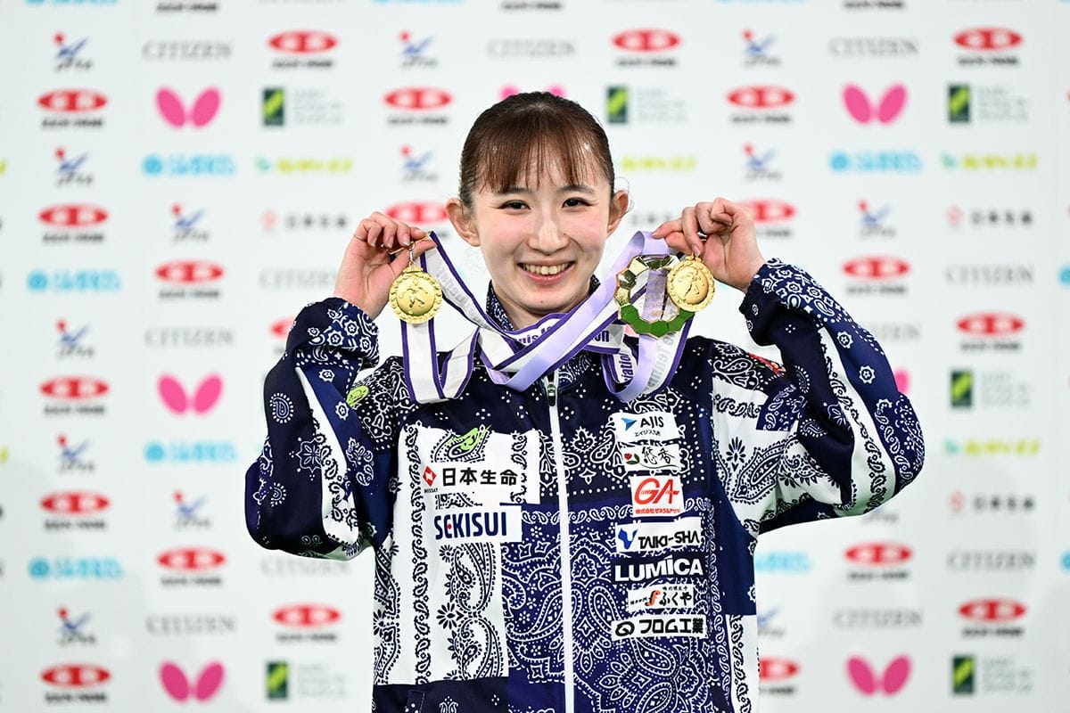 自分自身が東京オリンピックが終わってパリオリンピックに向けて着実に力をつけるためにやってきたことが、結果的に三冠につながっているかなと思いますし、それを裏で一緒に戦ってくれている皆さんのおかげで、やっぱり自分自身がこうやって優勝することができたと思うので、これから、全日本よりもさらに上の世界選手権だったりとか、中国人選手にもっともっと勝てるよう頑張っていきたいなと思います。
