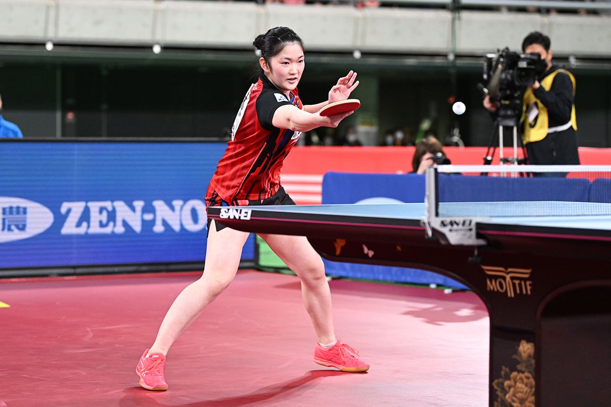 大会最終日は女子シングルス決勝が行われ、早田ひな(日本生命)が木原美悠(JOCエリートアカデミー/星槎)を4対2で下して優勝し、混合ダブルス、女子ダブルスに続いて三冠を獲得した。