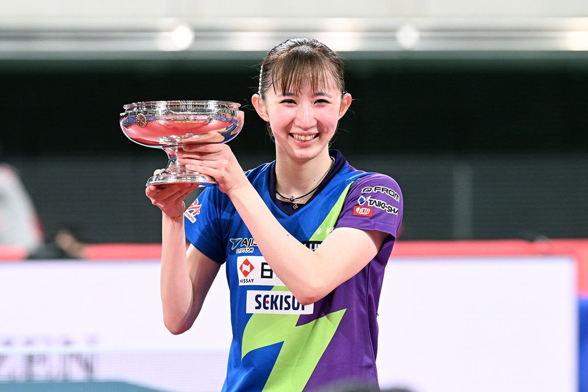 早田は、2020年以来2度目の優勝を果たすと同時に、混合ダブルス、女子ダブルスに続いて三冠を獲得した。
