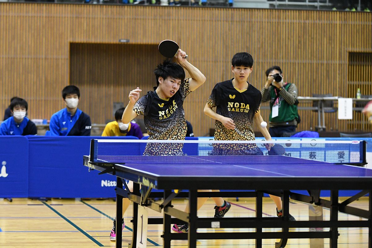 両ペアともチキータを得点源としているため、試合はサービスの変化や長さに工夫を凝らして相手ペアのチキータ封じに苦心する展開で進んだが、チキータ以外のレシーブでもコツコツと得点を重ねた中村/萩原が三木/木方を退け、愛工大名電が王手をかける。