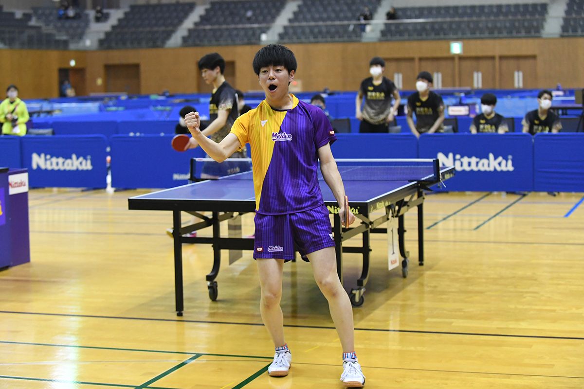 これで野田学園が8年ぶりの優勝だと会場の空気がゆるんだ瞬間、今度は中村が脅威の猛攻でジュースに追い付くと、逆にチャンピオンシップポイントを握り返してしまう。これが愛工大名電の底力かと驚嘆していると、またしても芝が奮起。このピンチを中陣から強烈なフォアハンドドライブでしのいで11-11に追い付くと、気迫で相手コートへボールをねじ込んで2本連取し、勝敗が二転三転した激戦にピリオド。