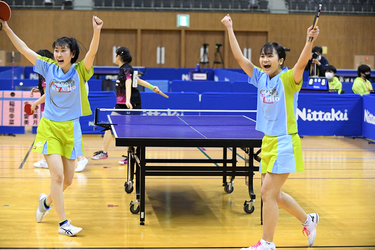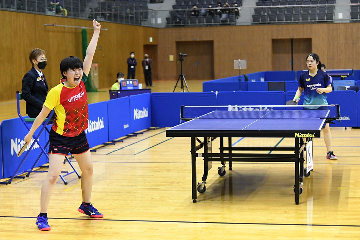 続く2番は、藤田が強打の由本と互角に打ち合ったものの敗れるが、3番のダブルスがゲームオールで競り勝ち、四天王寺が王手をかける。