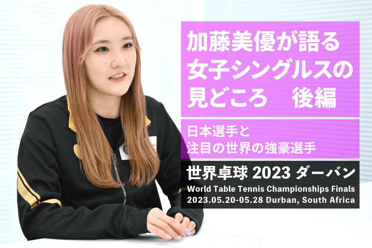 女子シングルスの見どころ後編では、加藤もよく知る日本選手への期待について、また、世界卓球を盛り上げてくれるであろう世界の強豪選手について聞いた。