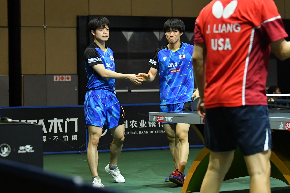 男子ダブルスでは、世界卓球2021ヒューストンの銅メダリストでもある戸上/宇田が登場。技術、球威、コンビネーションで相手を大きく上回るプレーでストレート勝ち。2回戦進出を決めた。