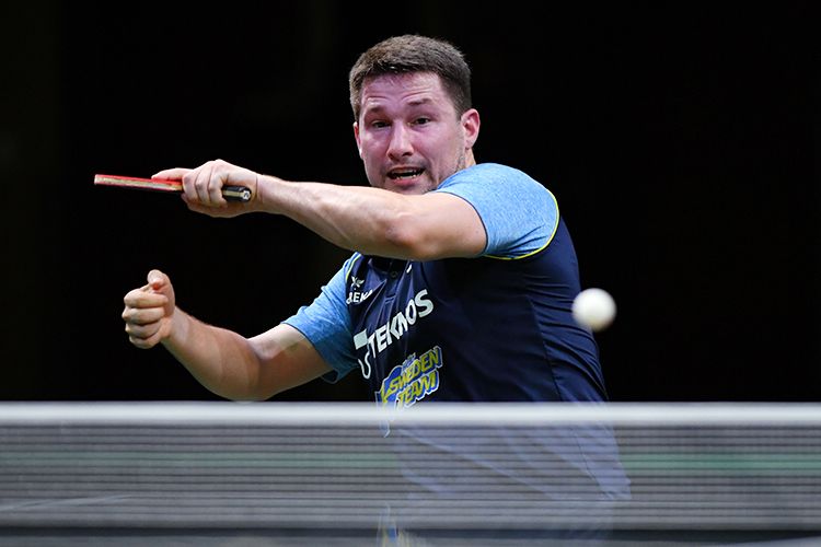 ダブルスの名手K.カールソン(スウェーデン)は、サウスポーの強打でベルギーの若手ラッセンフォスに快勝。3回戦で東京五輪の金メダリスト、馬龍(中国)に挑戦する。