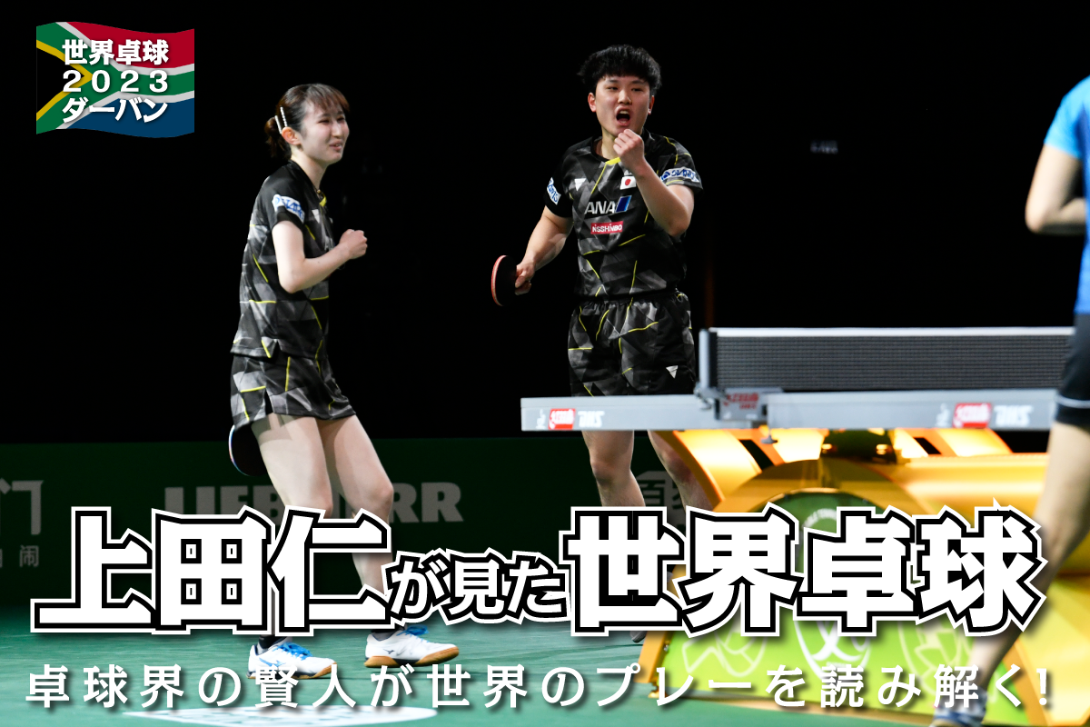 元日本代表の経歴を持ち、その真摯な人柄から「卓球界の賢人」として名高い上田仁が、確かな実力と経験に裏打ちされた深く鋭い洞察力で世界卓球2023ダーバンの攻防を読み解く。