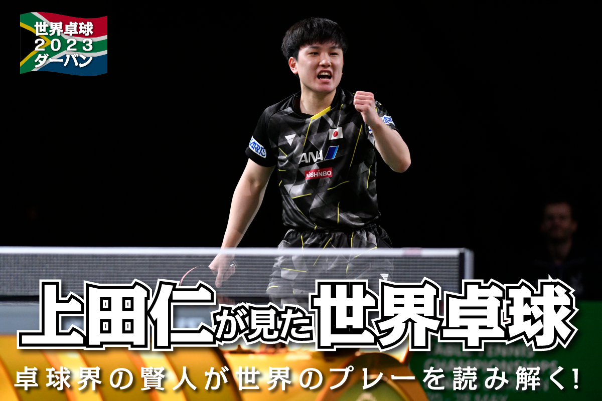 元日本代表の経歴を持ち、その真摯な人柄から「卓球界の賢人」として名高い上田仁が、確かな実力と経験に裏打ちされた深く鋭い洞察力で世界卓球2023ダーバンの攻防を読み解く。