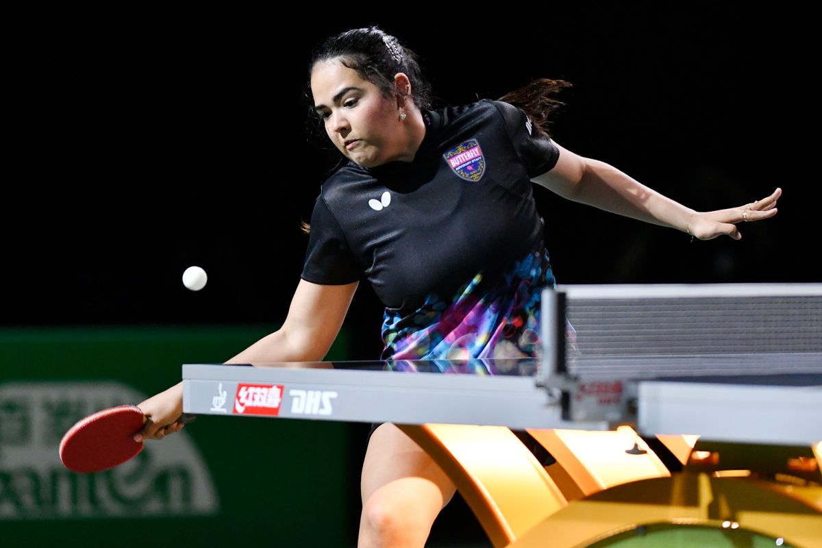 第1ゲームを伊藤が取り、第2ゲーム以降もタイミングが少しゆっくりなA.ディアスに対し、時間のある伊藤は表ソフトラバーでのバックハンドで振り回したり、回り込んで攻めたりと変幻自在なプレーで優勢に立ちます。A.ディアスも時折、伊藤の株を奪う「みまパンチ」のようなカウンタースマッシュで見せ場をつくりますが、伊藤が終始落ち着いてプレーし、ストレートで勝利しました。