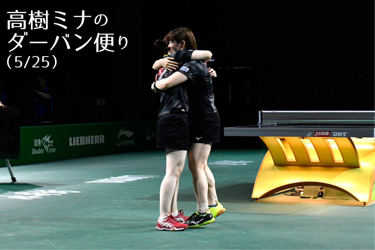 5月25日、前日の張本智和/早田ひなの混合ダブルスに続き女子ダブルスの木原美悠/長﨑美柚が準々決勝を突破。