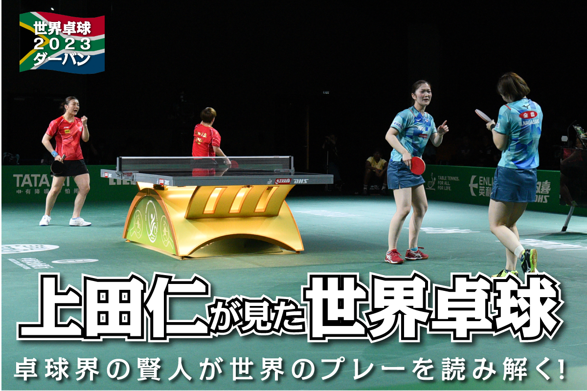 元日本代表の経歴を持ち、その真摯な人柄から「卓球界の賢人」として名高い上田仁が、確かな実力と経験に裏打ちされた深く鋭い洞察力で世界卓球2023ダーバンの攻防を読み解く。